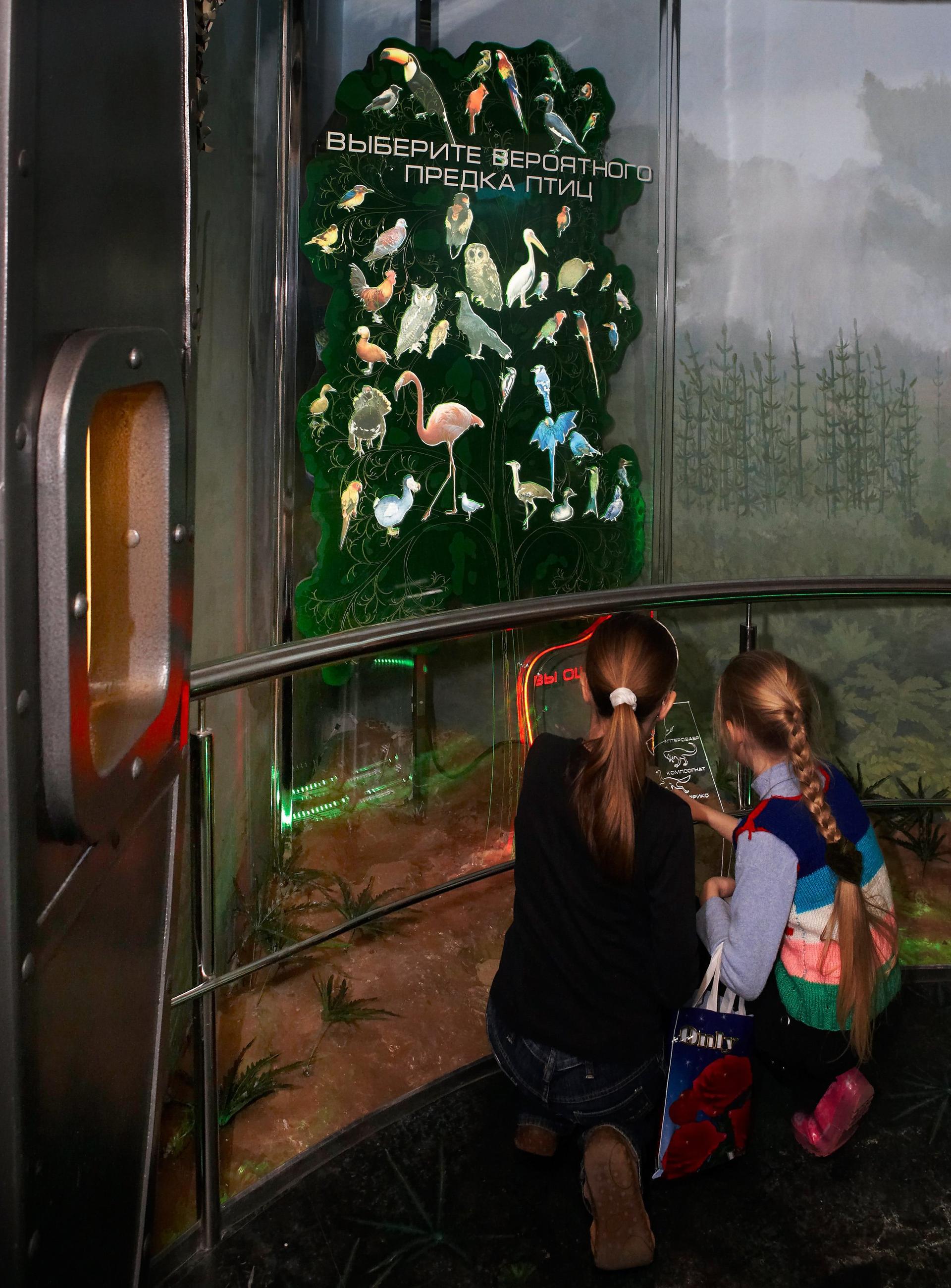 Предлагаем отправиться в увлекательное путешествие во времени. Вы сможете вернуться на 3,5 миллиарда лет назад и, отвечая на вопросы, пройти по лабиринту эволюции, от появления первых живых организмов до стоянки древнего человека. У природы всегда был выбор, есть он и у вас. Не волнуйтесь, если вы ответите неверно, в экспозиции всегда можно найти правильный ответ, а яркая неожиданно вспыхнувшая надпись предупредит вас, что вы зашли в тупик. Путешествие будет увлекательным, зрелищным и познавательным. Здесь можно руками прикоснуться к минералам — свидетелям первых живых организмов на Земле, к окаменевшим раковинам и отпечатку археоптерикса, к зубу мамонта и трилобиту. Все модели древних животных и растений (а их более 50) сделаны в натуральную величину. А в конце каждый сможет сделать на память отпечаток рисунка мамонта, которого древний художник изобразил 15 тысяч лет назад.