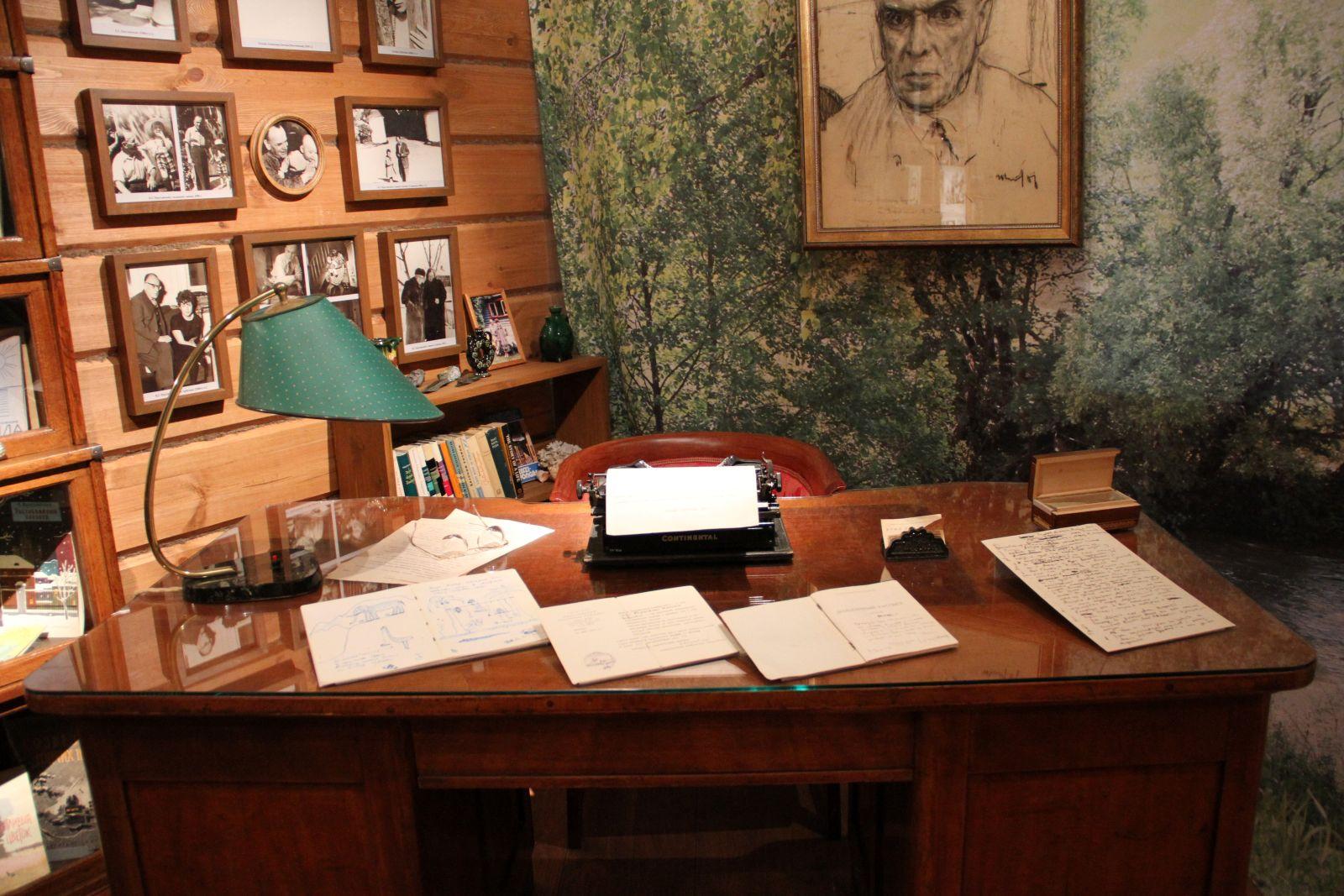 Для Константина Георгиевича Паустовского, как для каждого профессионального литератора, письменный стол был центром творческой жизни. Именно поэтому мемориальный стол занимает почётное место в экспозиции музея. За этим столом Паустовский работал в 1940-е годы на своей даче в писательском посёлке "Переделкино".