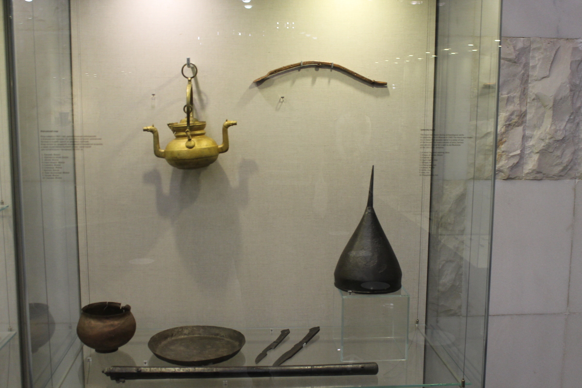 Интереснейшие оружейно-вещевые находки подарил историкам вещевой клад, обнаруженный в Ипатьевском переулке Китай-города. Осенью 1969 года в его недрах были обнаружены многочисленные вещи 16 века, связанные с пожаром – извечным бедствием древней Москвы. При углублении коллектора под мощным слоем золы и угля, на глубине трёх с половиной метров рабочие наткнулись на небольшой, метровой высоты, бочонок, по-видимому, когда-то вкопанный в землю в подклете дома, а затем заваленный при пожаре. Среди находок оказались железные боевые топоры, длинные ножи, древнерусский «шелом» - шлем, стремена. Особый интерес представляет ручная кованая пищаль – мушкет с гладким гранёным стволом. До наших дней дошли лишь считанные экземпляры. Среди них ипатьевская пищаль является, пожалуй, древнейшей. На стволе выбит стилизованный декор, который можно прочитать как число: 1555 и растительный орнамент. Вместе с оружием в том же бочонке оказались и хозяйственные предметы, из числа которых выделяется латунный литой рукомой (водолей). Этот округлый сосуд подвешивался на веревке, и вода лилась из пасти стилизованного животного. Две такие головы, служившие носиками, помещены на тулове сосуда, а с двух других сторон напаяны скульптурные человеческие головы в высоких шапках.
