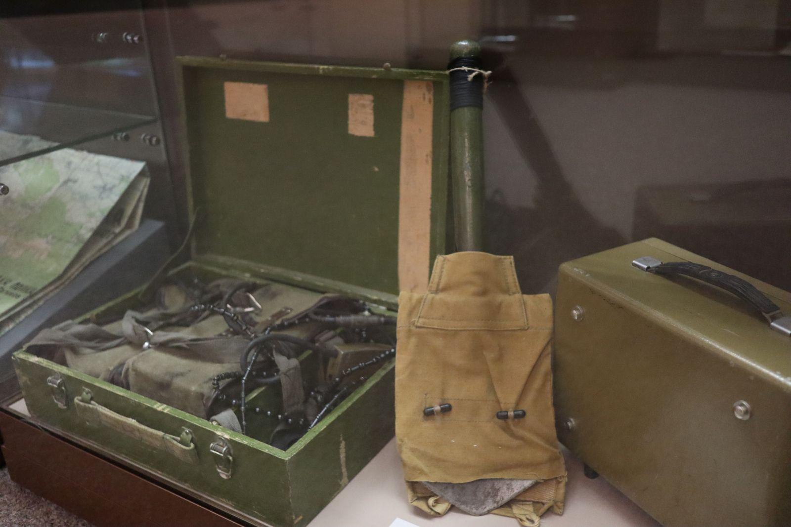 Гигантское, в несколько корпусов здание Совмина стало местом ожесточённых боёв, достойных Сталинграда. Вот морпехи закрепились в универмаге, выбили врага из столовой, атаковали Центробанк. Но и боевики нападали, внезапно появляясь из проломов в полу и даже из люков канализации. В лабиринте комнат разворачивались рукопашные схватки штык-ножами и сапёрными лопатками – такими, как в нижней части витрин перед вами. В этих схватках Вдовкин своими руками уничтожил троих врагов. В здании не было пищи и даже воды, а все пути к нему простреливались. Но группа Вдовкина продержалась четверо суток до подхода основных сил. Только тогда Виктор Викторович вернулся обратно в штаб. Точнее, его туда принесли – тяжело контуженного, но одержавшего победу.
