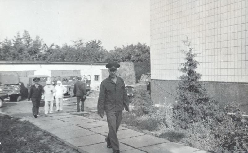 Фотография: «Начальник химических войск Министерства обороны СССР Герой Советского Союза генерал-полковник В.К. Пикалов в районе ликвидации последствий аварии на Чернобыльской АЭС. 1986 год».
