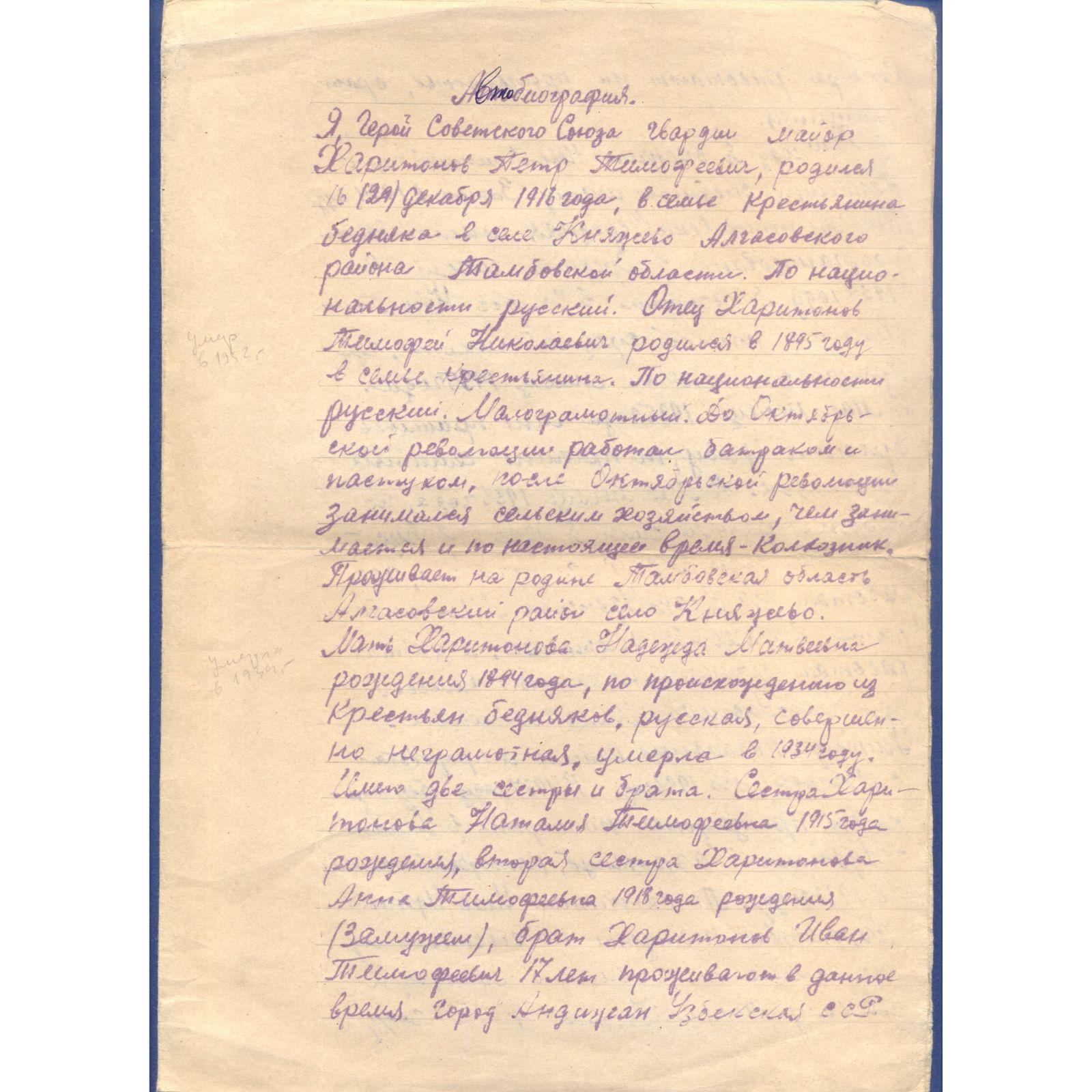 Автобиография П.Т. Харитонова.