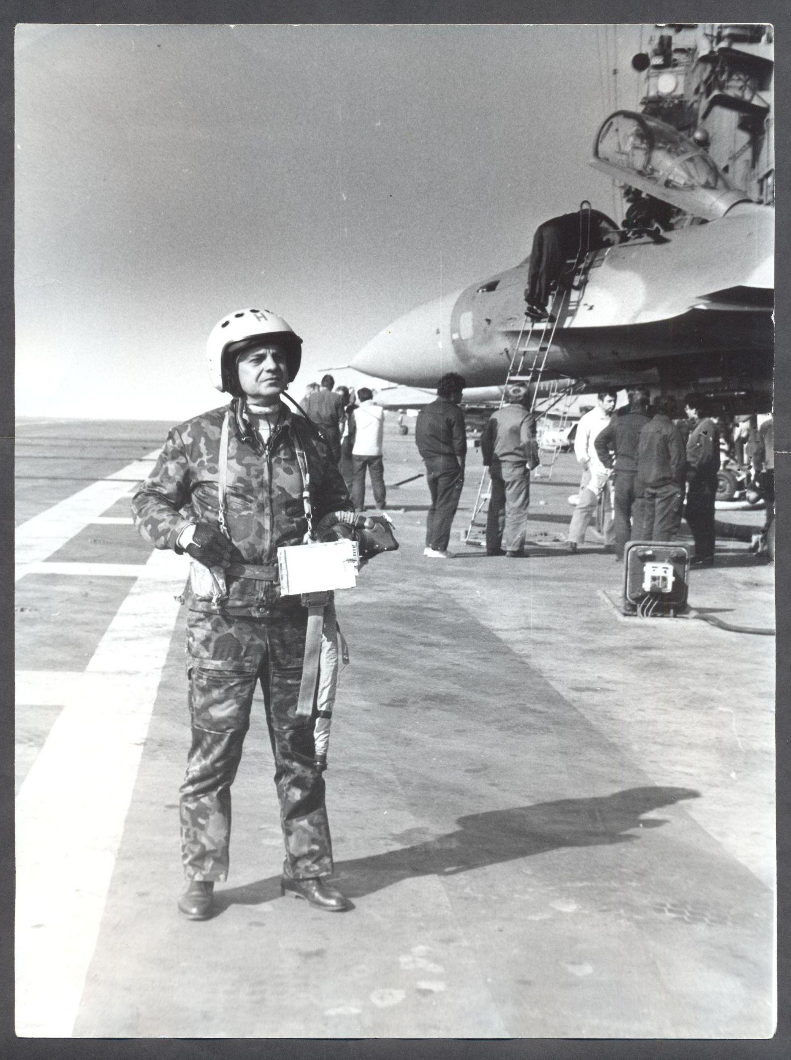 Фотография «Летчик-испытатель ГК НИИ ВВС Герой Советского Союза полковник В. Н. Кондауров на палубе тяжелого авианесущего крейсера «Тбилиси».