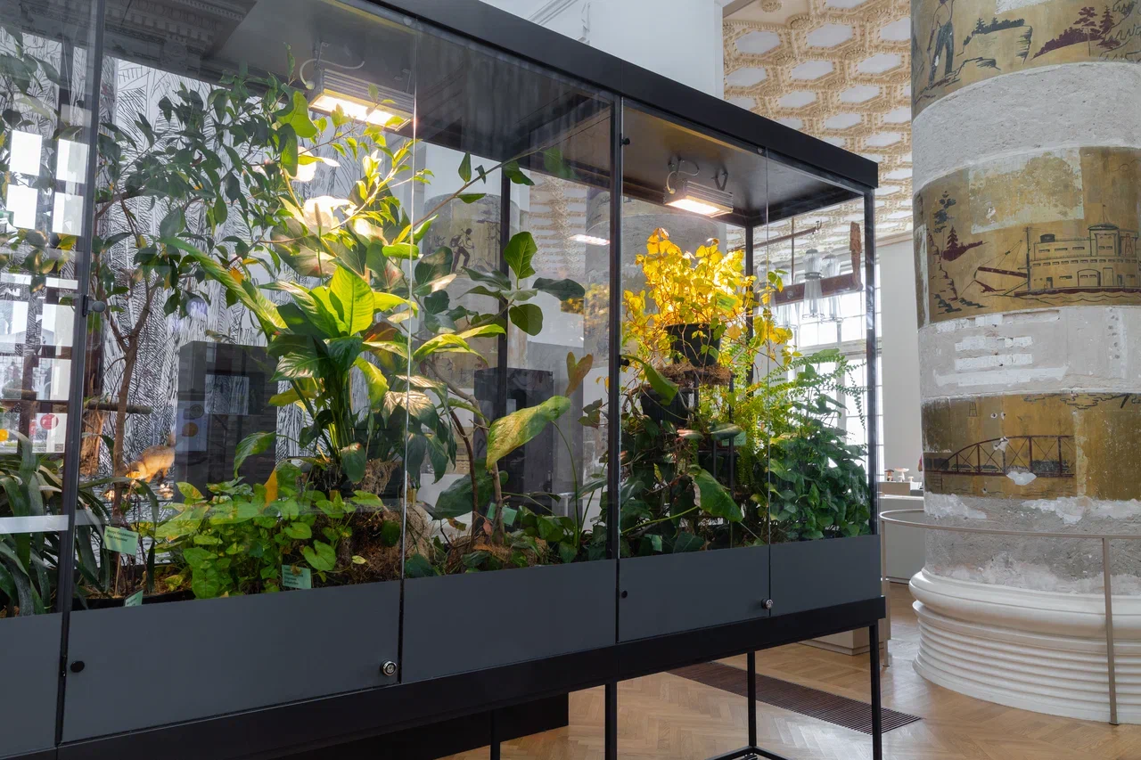 «Размножение» — следующий признак живого. Его демонстрирует мультимедийная инсталляция Марины Алексеевой «Нас всё больше». Перископы позволяют увидеть короткие анимационные сюжеты на тему размножения. А фоном для них служит флорариум с живыми тропическими растениями. В специальной витрине создан и поддерживается особый микроклимат для обитателей заморских стран. В основном это цветковые растения, которые размножаются семенами. Но в некоторые периоды растения используют вегетативное размножение с помощью частей своего тела — усов, отпрысков, отводков. А папоротники размножаются при помощи не семян, а спор.