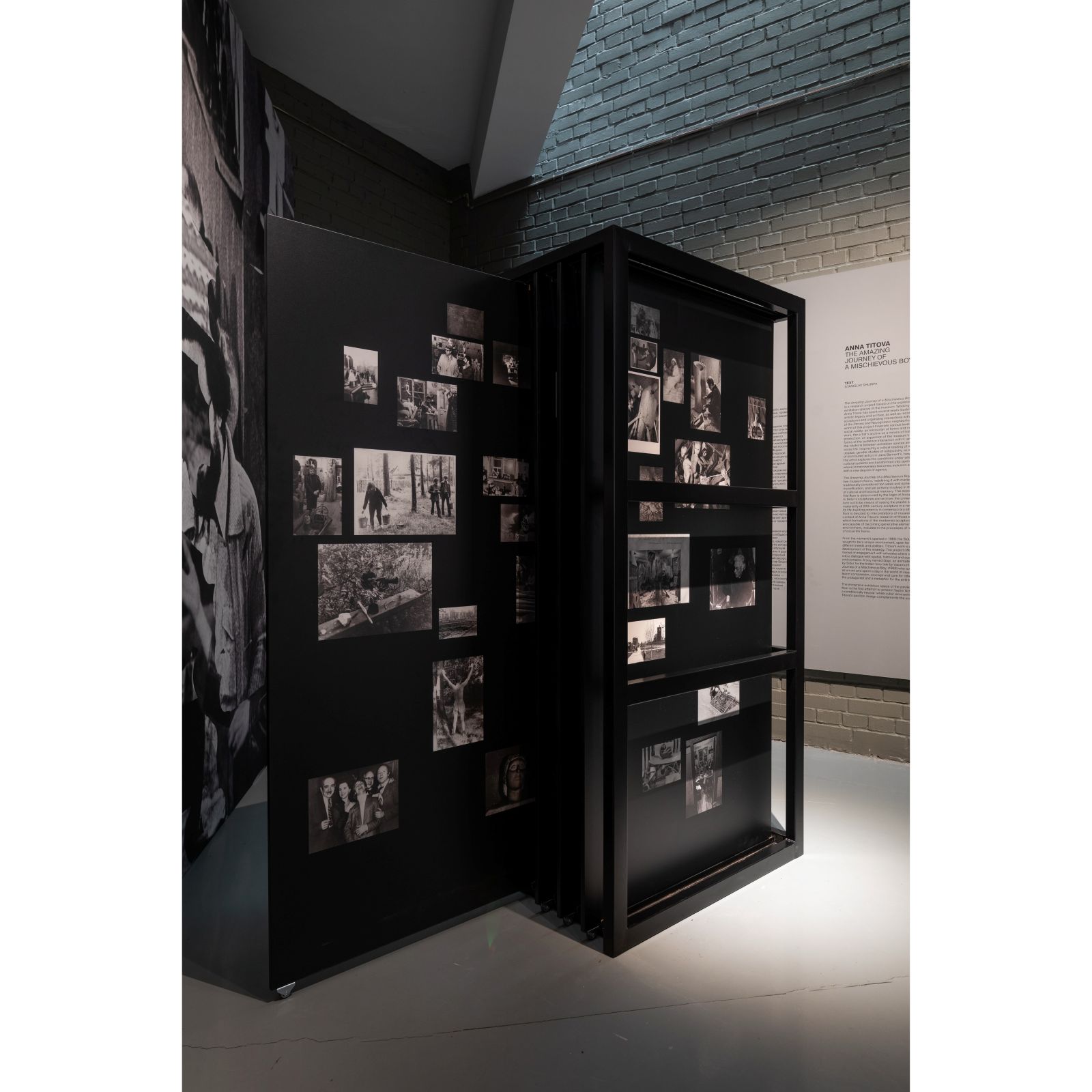На второй панели обратите внимание на портретженщины в белом платье — это Зинаида Ивановна Андрианова, мать Вадима Сидура. Дореволюционная фотография запечатлела ее в юности, до знакомства с Абрамом Яковлевичем Сидуром, отцом скульптора. Они встретились в 1920-х в Геленджике, где оба работали воспитателями в колонии для беспризорных детей. Впоследствии Абрам Яковлевич занял должность инженера на кондитерской фабрике, а Зинаида Ивановна работала в библиотеке.