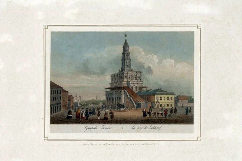 Обернитесь назад, слева от центрального прохода скрывается следующий зал. По левую руку рассказывается об одном из сподвижников Петра I Якове Брюсе, одном из самых образованных людей своего времени. За свои научные эксперименты в Москве он получил репутацию чернокнижника. Его обсерватория находилась на верхнем этаже Сухаревой башни. Этот памятник архитектуры был построен в конце XVII века по образцу европейских ратуш, которые Петр I видел в своих путешествиях по Европе. Здесь же располагалась Навигацкая школа, одна из первых светских профессиональных школ в России. В витринах вы можете увидеть книги, связанные с деятельностью Брюса, который заведовал первой московской гражданской типографией. Например, учебник арифметики Леонтия Магницкого, заказанный Петром Первым специально для Навигацкой школы. Над книжным собранием расположены архитектурные детали Сухаревой башни. Почти сто лет назад она была домом для нашего музея, и при ее сносе музейные сотрудники сумели сохранить некоторые фрагменты ее декора. Подробнее об истории музея и сносе Сухаревой башни вы сможете узнать в отдельном зале ближе к концу экспозиции.