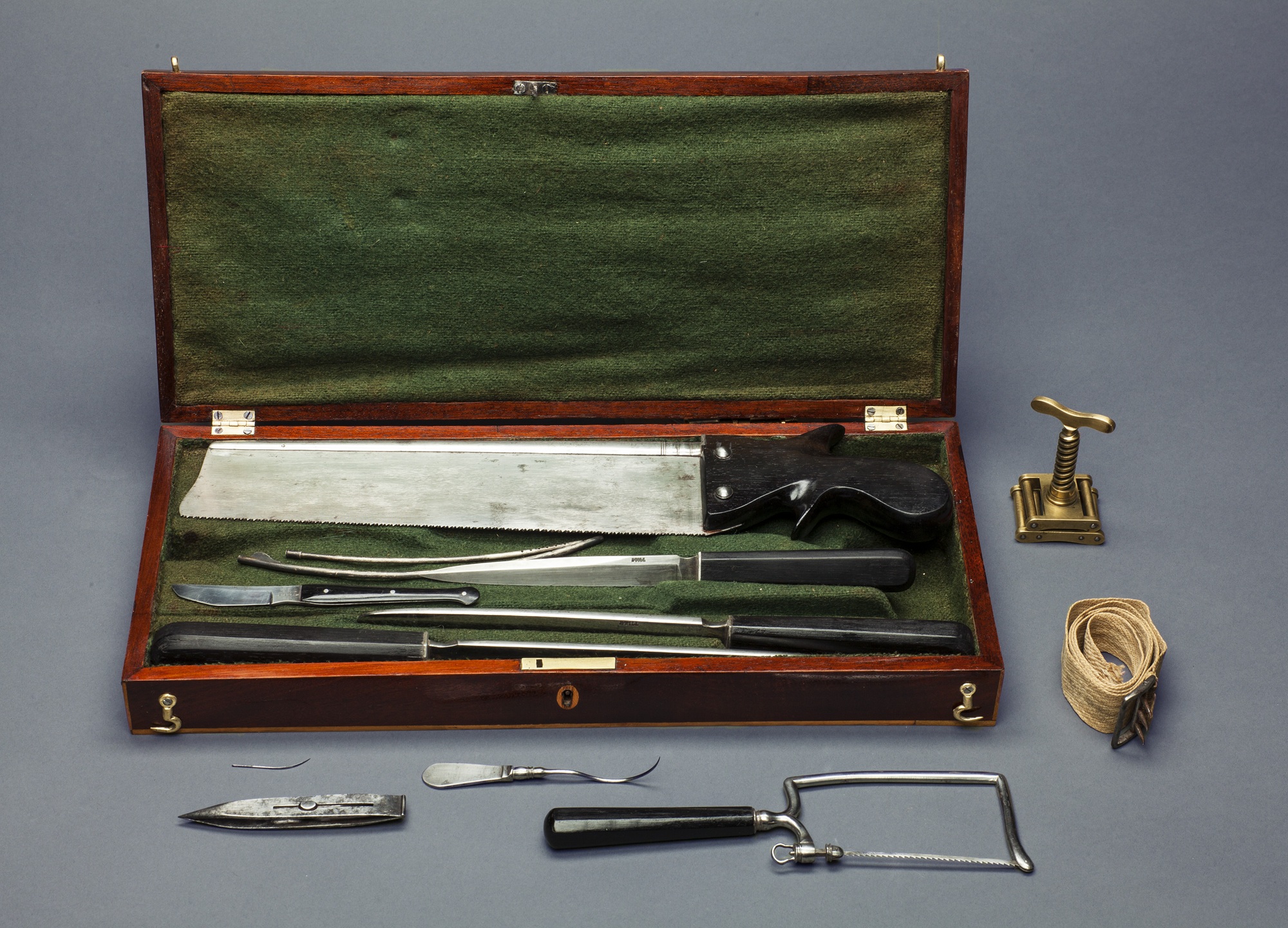 Набор ампутационных инструментов – звучит угрожающе. Один из российских офицеров, раненных в Бородинском сражении, вспоминал, что для него «оператор с кривым ножом был страшнее Наполеона и французов». Операторами в эпоху 1812 года часто называли хирургов.