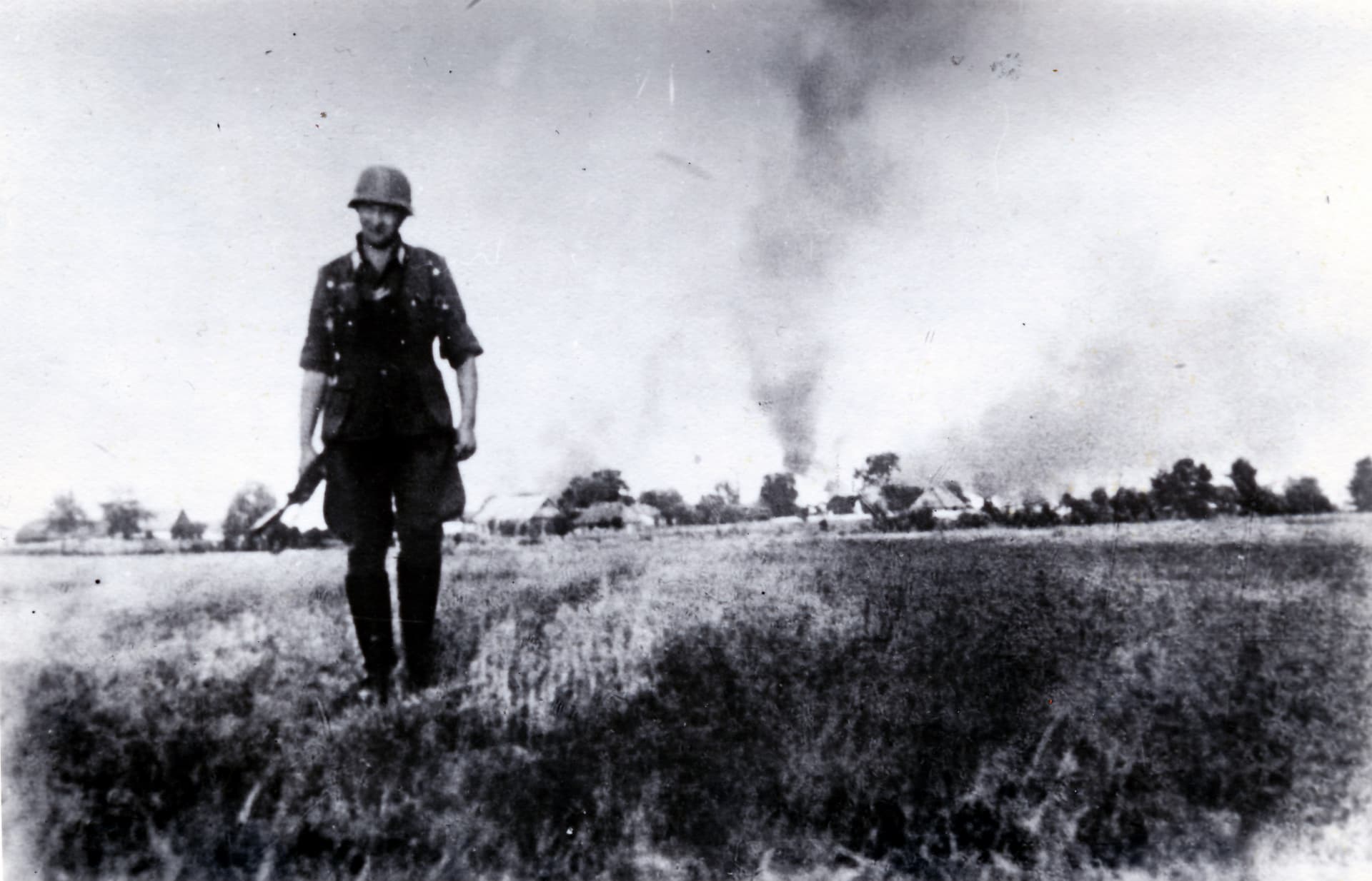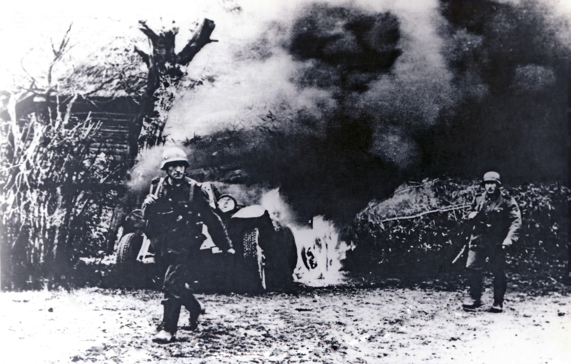 Фотографии показывают первые часы этой войны, запечатленные немецкими фотографами. Эта своеобразная «фотолетопись» похода на Восток велась немцами всю войну. Любили нацисты фотографироваться на фоне горящих деревень и разбитой советской техники. Но были и иные фото - на фоне их жертв, русских солдат и мирных жителей повешенных и расстрелянных лишь за то, что они были русскими...