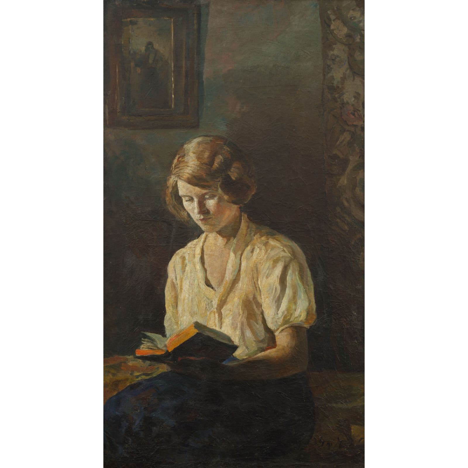 Перед нами портрет Валентины Те́реховой – будущей жены художника. Налбандян пишет его уже после переезда, в 1934 году – в год их знакомства. О самой Валентине известно мало. Предполагают, что она была из обеспеченной московской семьи и стала одной из первых советских женщин, получивших профессию машинистки.