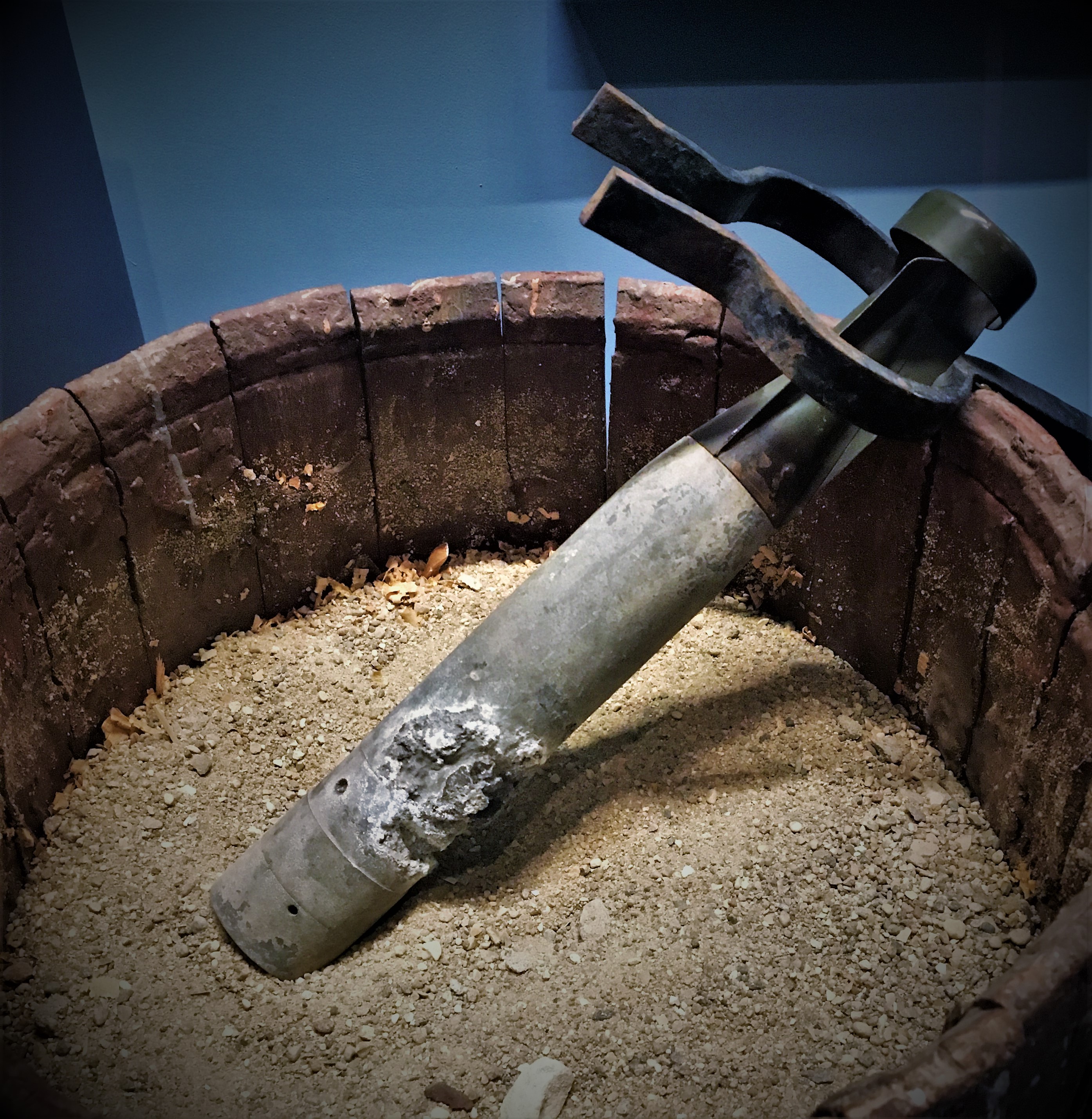 Зажигательная авиационная бомба Б-1 Е отличалась от прочих небольшой пробивной способностью, обусловленной предназначением — не пробить накат, бетон или броню, не поразить живую силу или объект осколками или ударной волной, а поджечь строение. При бомбардировках населенных пунктов, особенно крупных городов, массово применялась люфтваффе кассетным способом: до 700 штук в контейнере. Эта зажигательная авиабомба весит 1,3 кг и состоит из электронного цилиндрического корпуса диаметром 50 мм, донной пробки, головки со взрывателем и стабилизатора. Электрон — это высокопрочный и легкий магниевый сплав, который горит ослепительно белым пламенем. Бомба снаряжена пиротехнической смесью на основе термита — высокотемпературного горючего состава. Механический инерционный взрыватель — мгновенного действия.