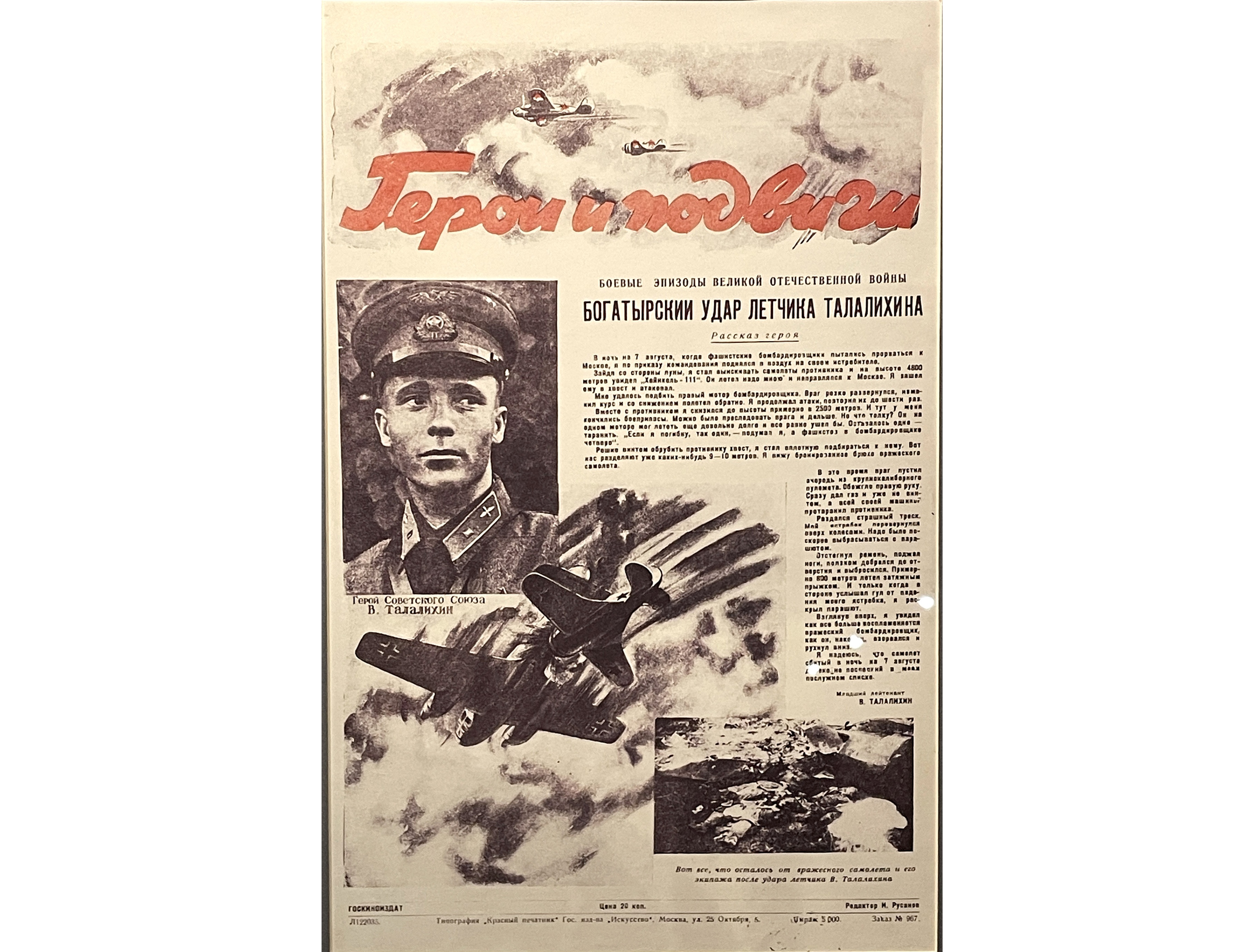 Виктор Талалихин погиб в воздушном бою в районе Подольска 27 октября 1941 г. и был похоронен в Москве. На Новодевичьем кладбище. В 1952 г. улица на юго-востоке Москвы была названа именем Героя.