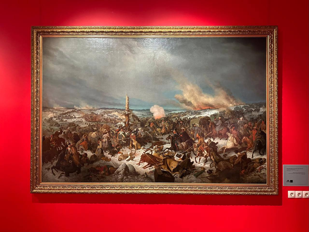 Время действия – около 9 часов утра. Последние боеспособные части под командованием маршала Виктора уже переправились и подожгли за собою мосты. Один мост Хесс изобразил рухнувшим в ледяные воды Березины. Положение отставших стало безвыходным. Их ожидает смерть или плен.
