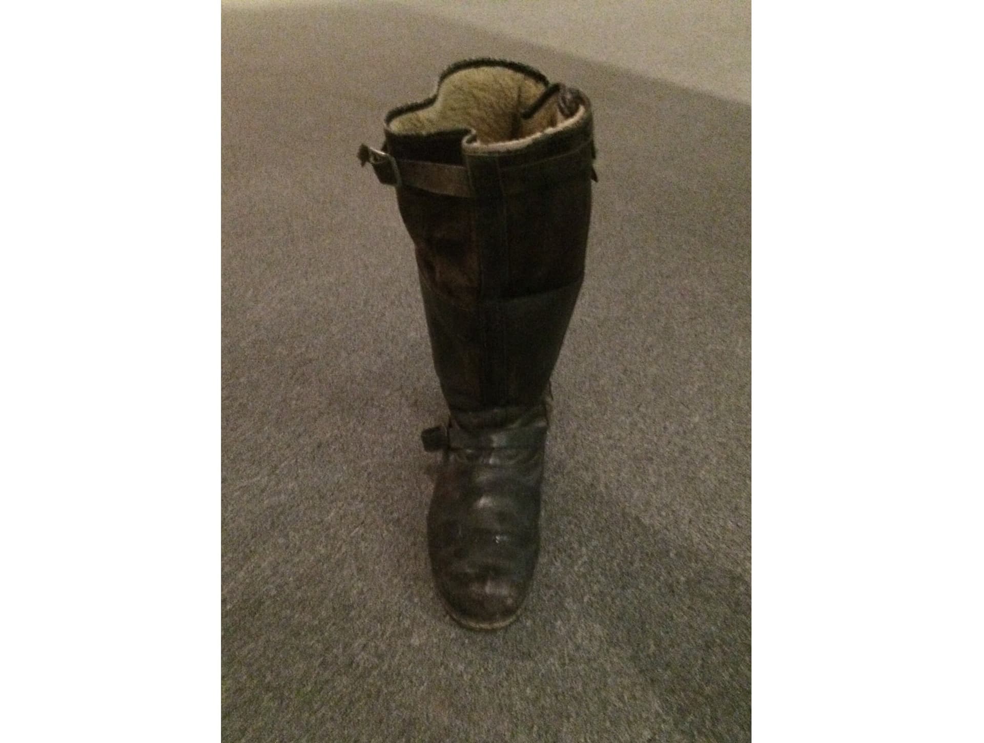 Унты покрыты собачьим мехом, а изнутри подбиты мягким войлоком или ватином. Головки унтов юфтевые, по подъему головок затяжные ремешки с пряжками. Другие ремешки для подхватывания меховых голенищ под коленями. Голенища также имеют тесьмяные ушки для крепления к кольцам на боковых швах штанин. Подошвы унтов из нескольких слоев войлока. На земле унты носятся с резиновыми галошами.
