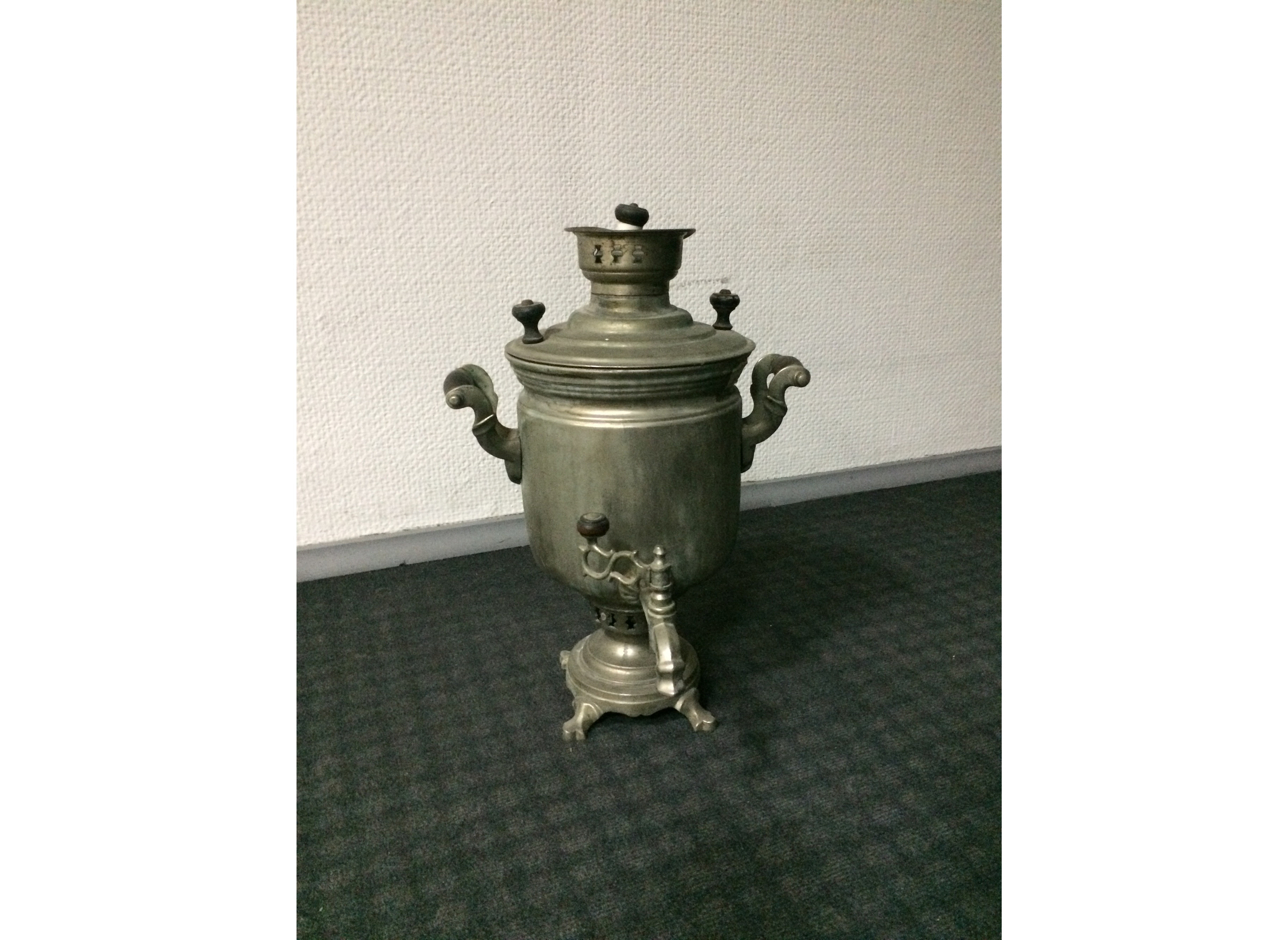 Тульский самовар, принадлежавший Михаилу Катукову. Этот самовар в декабре 41-го генералу-гвардейцу подарили тульские рабочие. Интересен чехол для самовара - он был сделан из снарядного ящика Катуков обещал, что попьет крепкого чайку из этого самовара в Берлине. Обещание Катуков сдержал в мае 1945 года, когда был во вражеской столице как командующий 1-й гвардейской танковой армией.