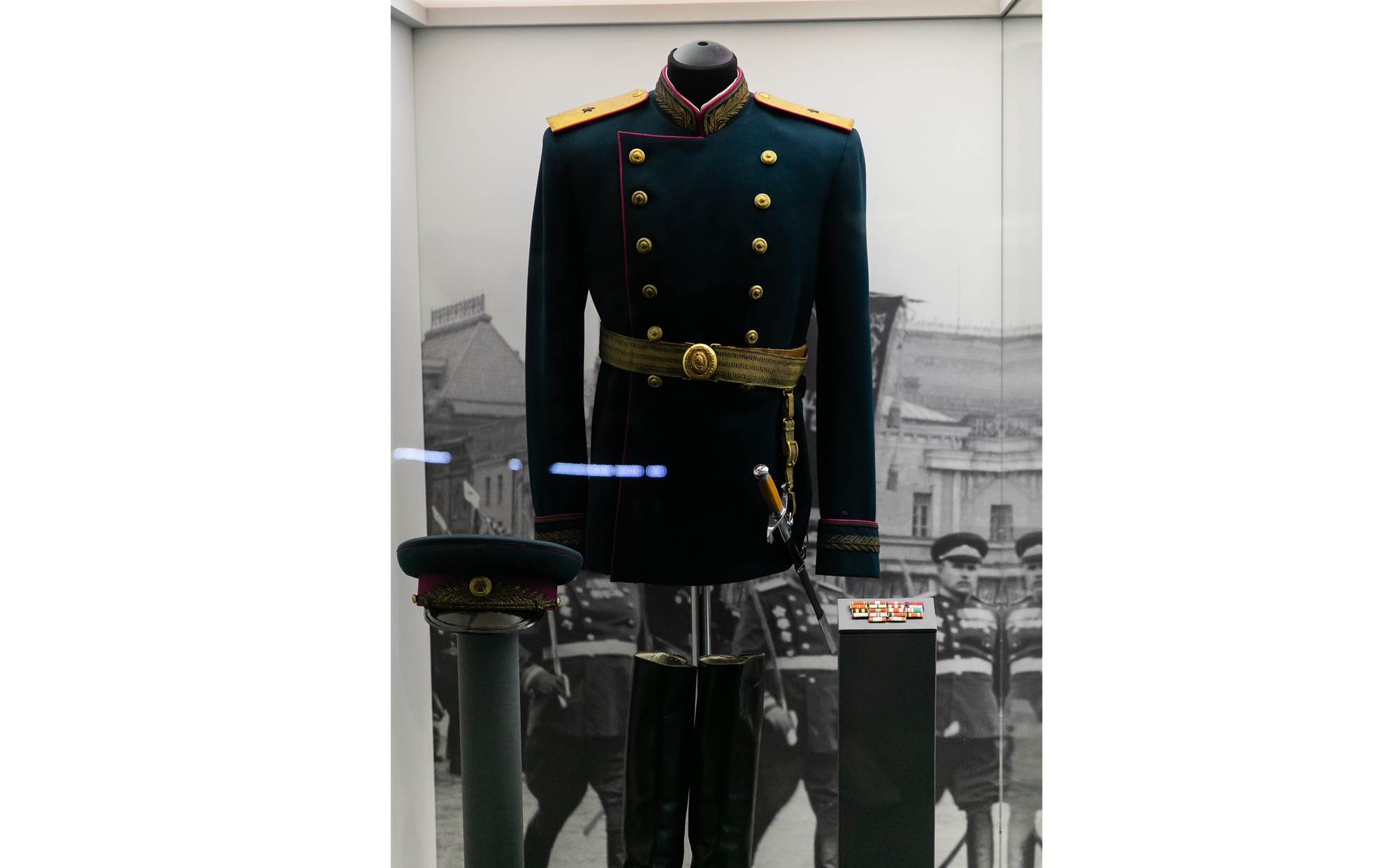Мундир парадный генеральский образца 1945 года, фуражка, орденские планки, пояс парадный, кортик, сапоги, шпоры