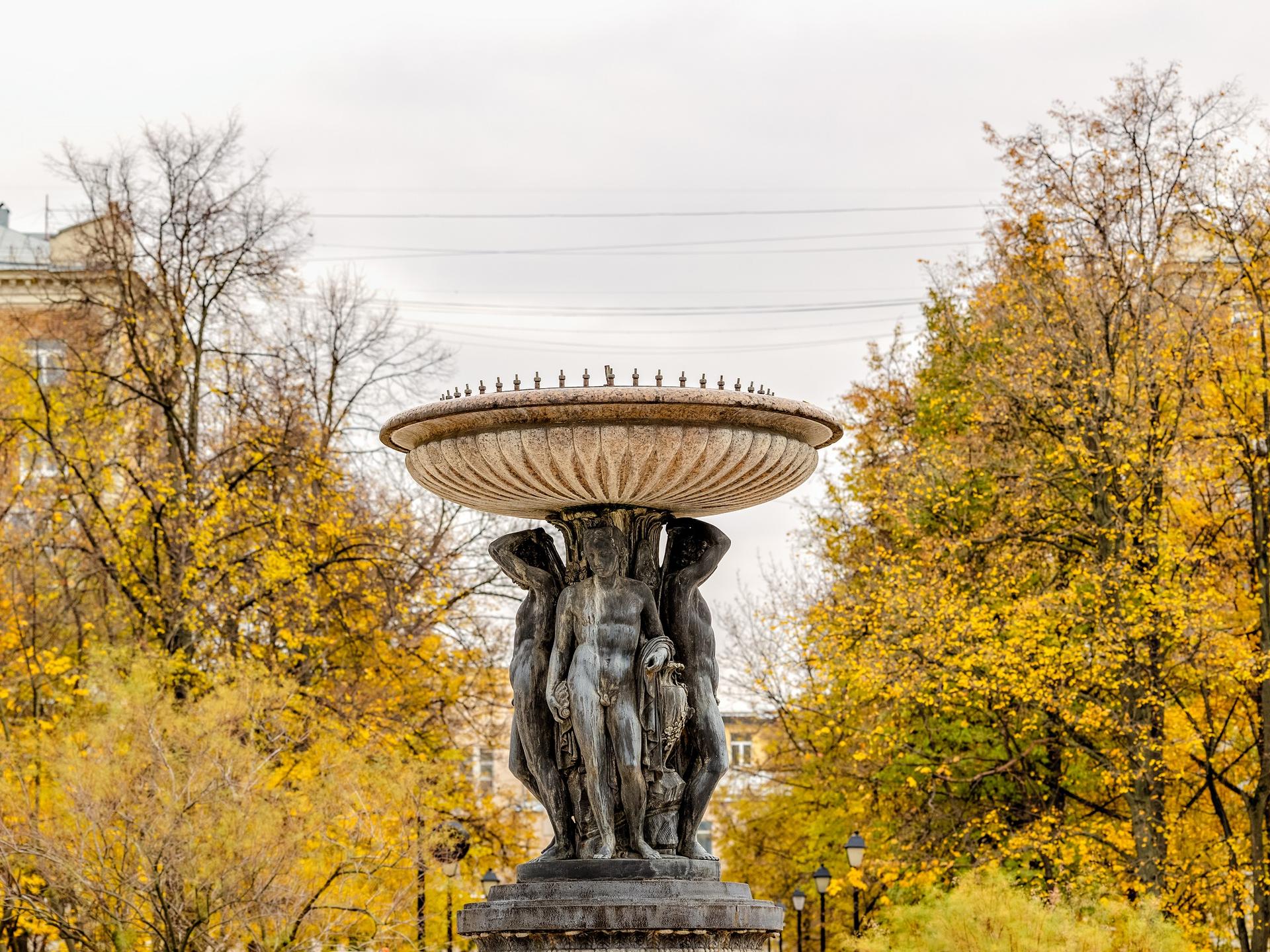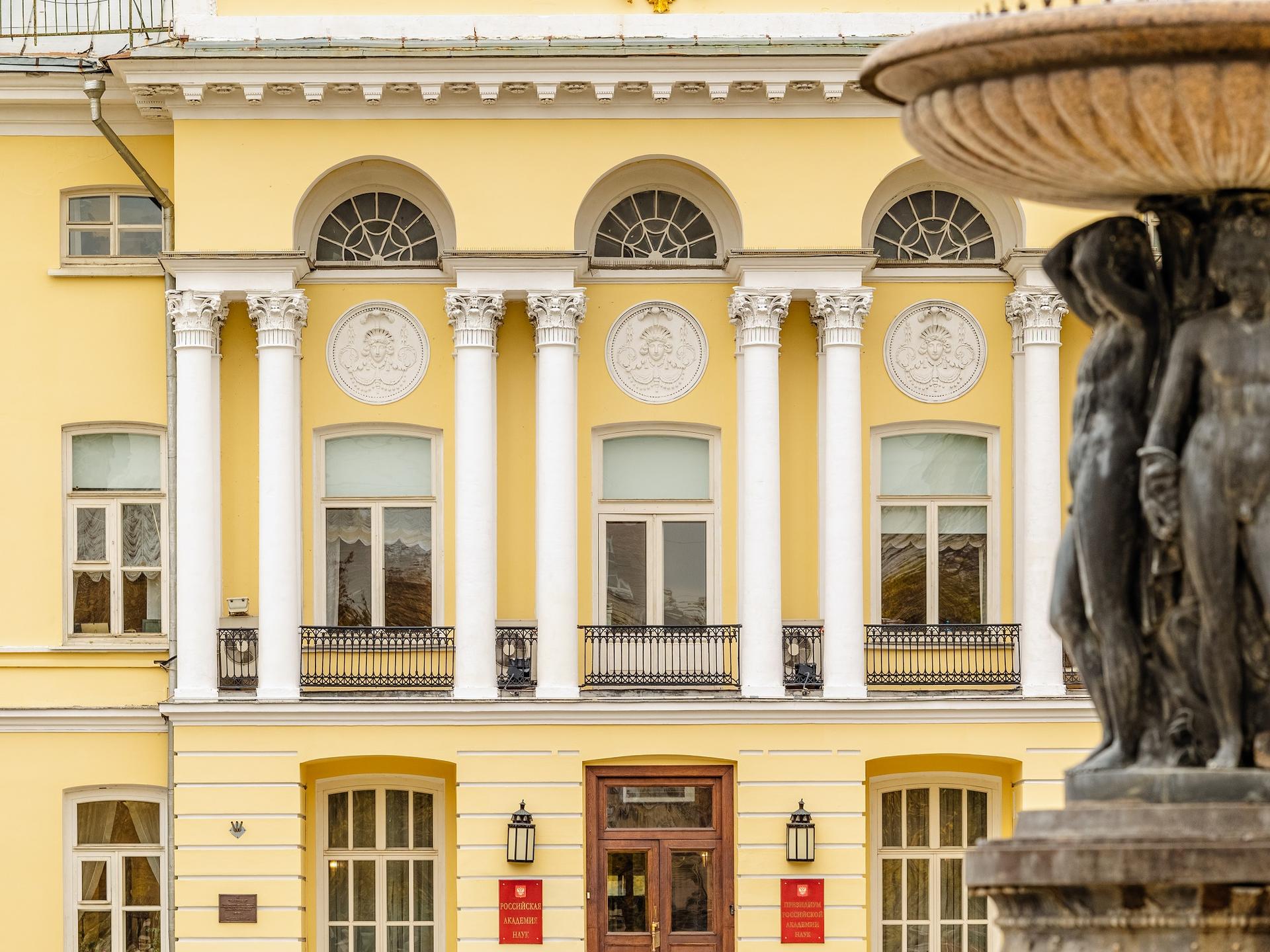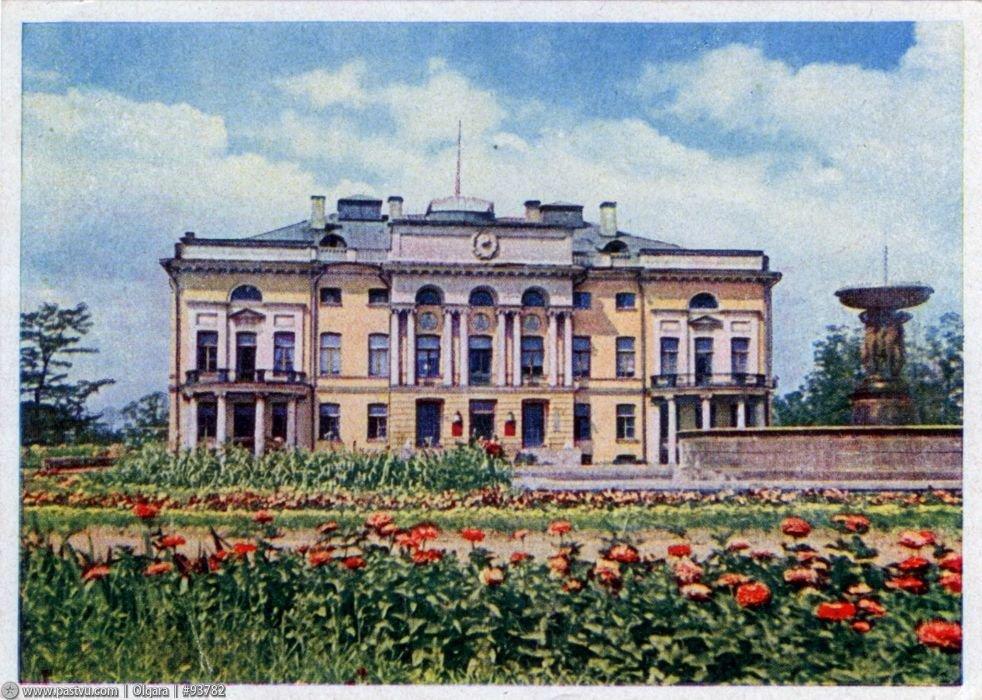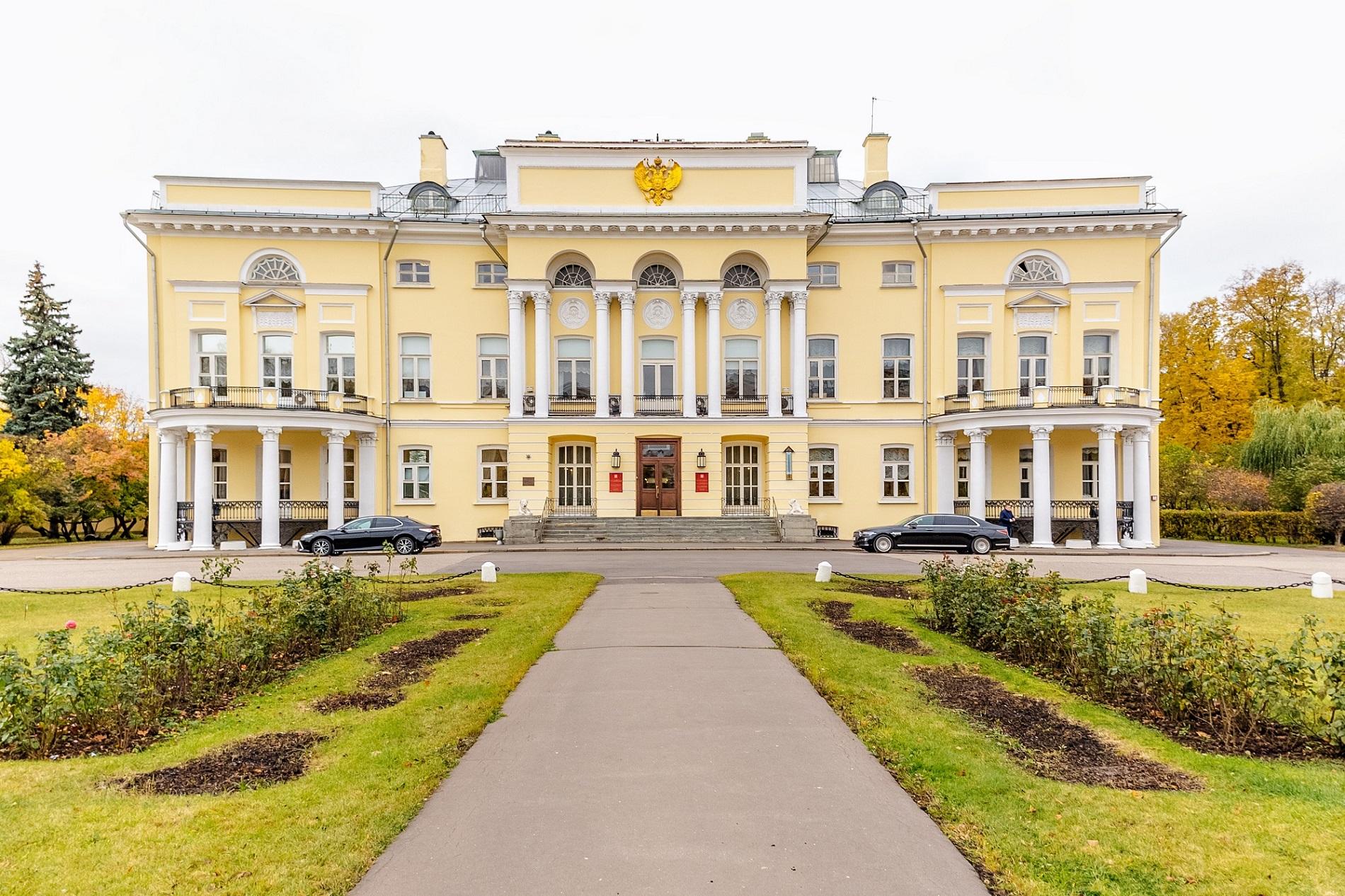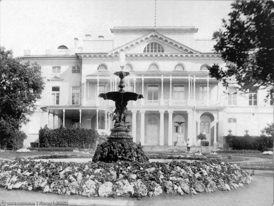 Дворец стал центром царской резиденции, к нему со стороны ворот вела парадная аллея, открывающаяся парадными воротами со скульптурными группами, символизирующими изобилие (скульптор – Витали, 1846г.). Парадный двор оформляли Фрейлинский и Кавалерский корпуса, рядом появилась небольшая Гаупвахта. Очень удачно в этот ансамбль вписался чугунный фонтан. Небезынтересно будет узнать, что фонтан здесь появился почти на век позже, в 1936 году, когда в здании Александринского летнего дворца, переехав из Ленинграда, расположился Президиум Академии Наук СССР. Ранее фонтан стоял на Лубянской площади, где служил водозаборным бассейном, в который питьевая вода подавалась из Мытищинского водопровода.