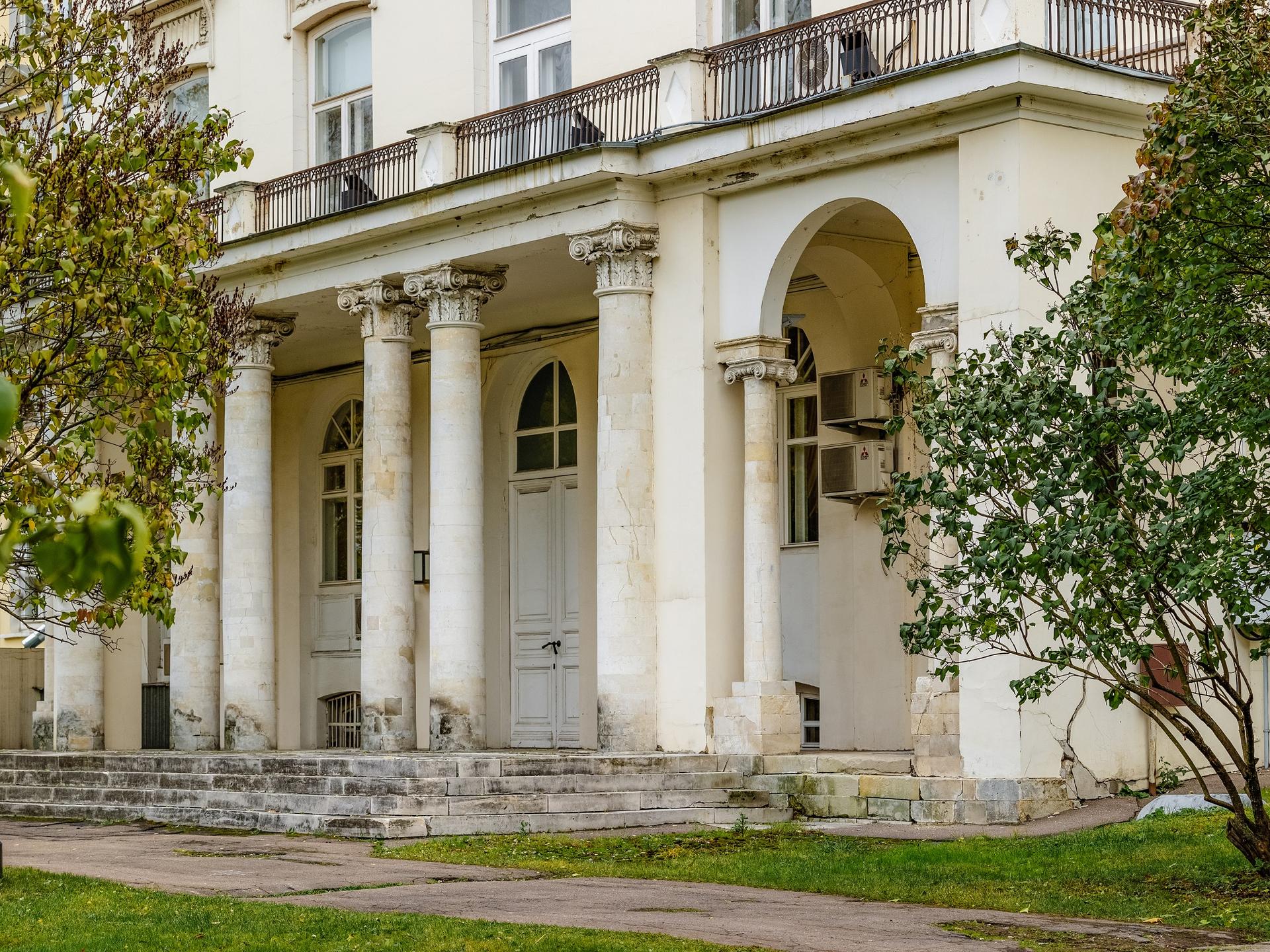 В основе здания по Ленинскому проспекту, 14, лежат П-образные палаты (1756 г.) – главный дом усадьбы, созданной П. А. Демидовым, сыном уральского заводчика и известным садоводом-любителем.