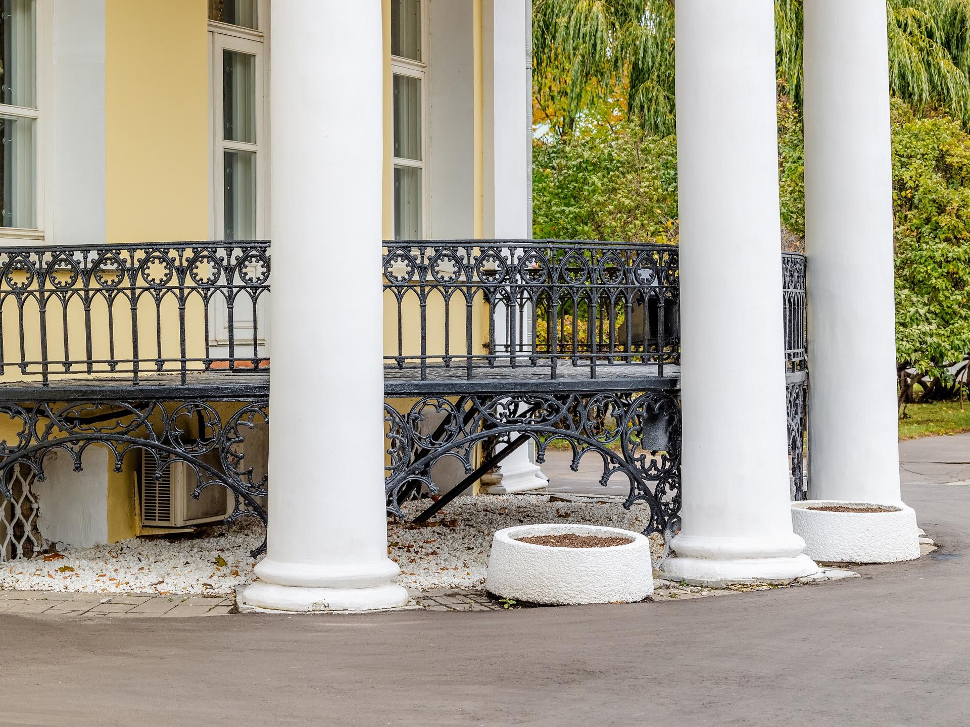 Главным домом стали палаты Демидова, перестроенные в 1804 г. в несколько измельченных формах зрелого классицизма. Своеобразен портик на центральном ризалите главного фасада: четыре пары коринфских колонн несут декоративную стенку, прорезанную арками, в которые выходят окна третьего этажа. Перед плоскими боковыми ризалитами помещены сильно выступающие полуциркулярные балконы на невысоких колонках.