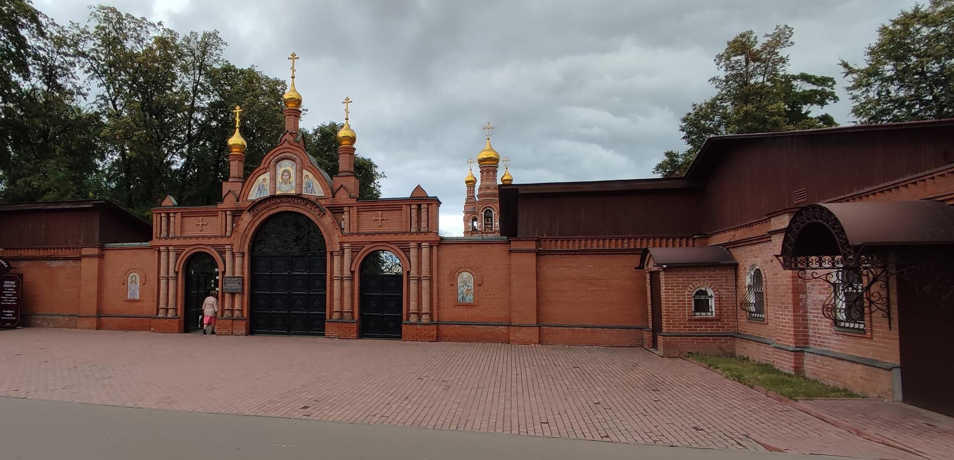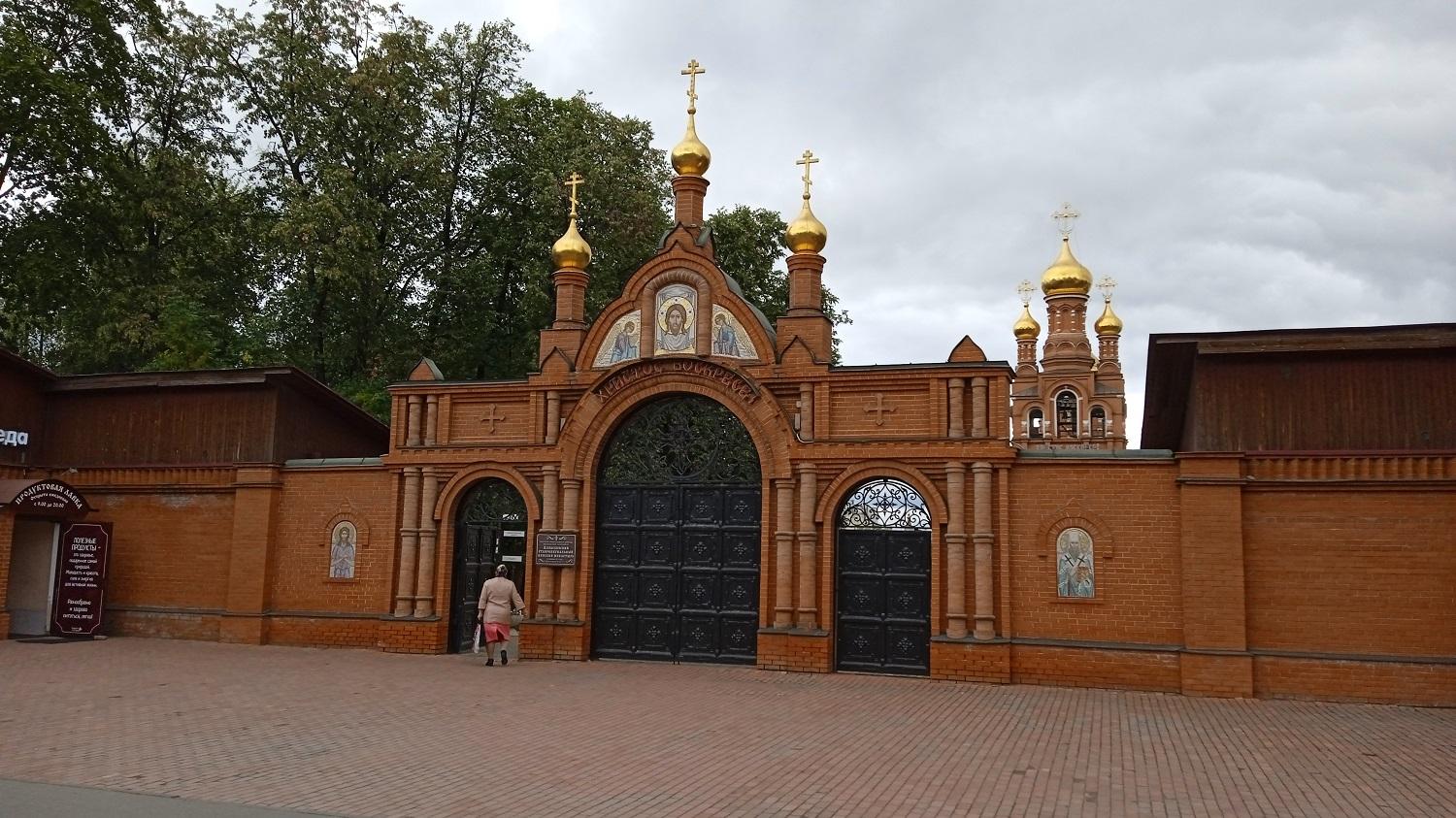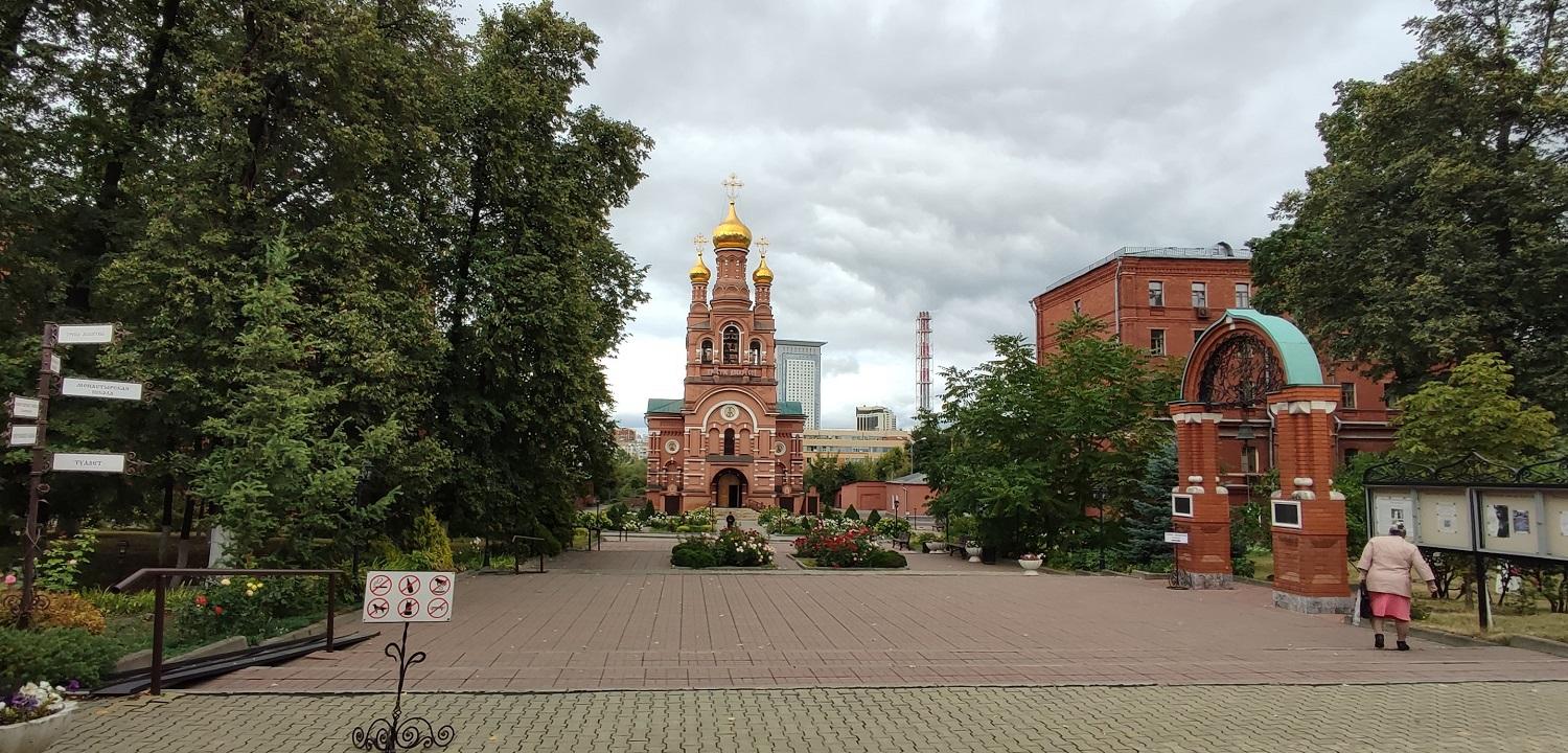 Чтобы соответствовать названию, в церкви Крестовоздвижения был создан придел во имя Алексия Человека Божия, а сама она была расширена. От первоначального облика сохранялся восьмерик с отделкой в стилистике нарышкинского барокко и шатровая колокольня. В 1853 году по проекту М.Д. Быковского построен новый монастырский собор с посвящением Алексию Человеку Божию: в нем сочетались псевдовизантийские и венецианские черты. В 1887–91 годах А.А. Никифоровым был построен отдельный кладбищенский храм Всех Святых. Церковь сочетала в себе русские и византийские черты, с запада была пристроена трехглавая колокольня. Наконец, небольшая церковь во имя Архангела Михаила была освящена в 1879 году при богадельне, покоях настоятельницы и «училище для южнославянских девиц».