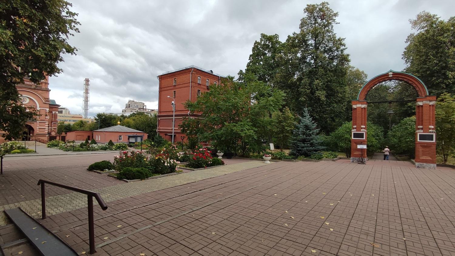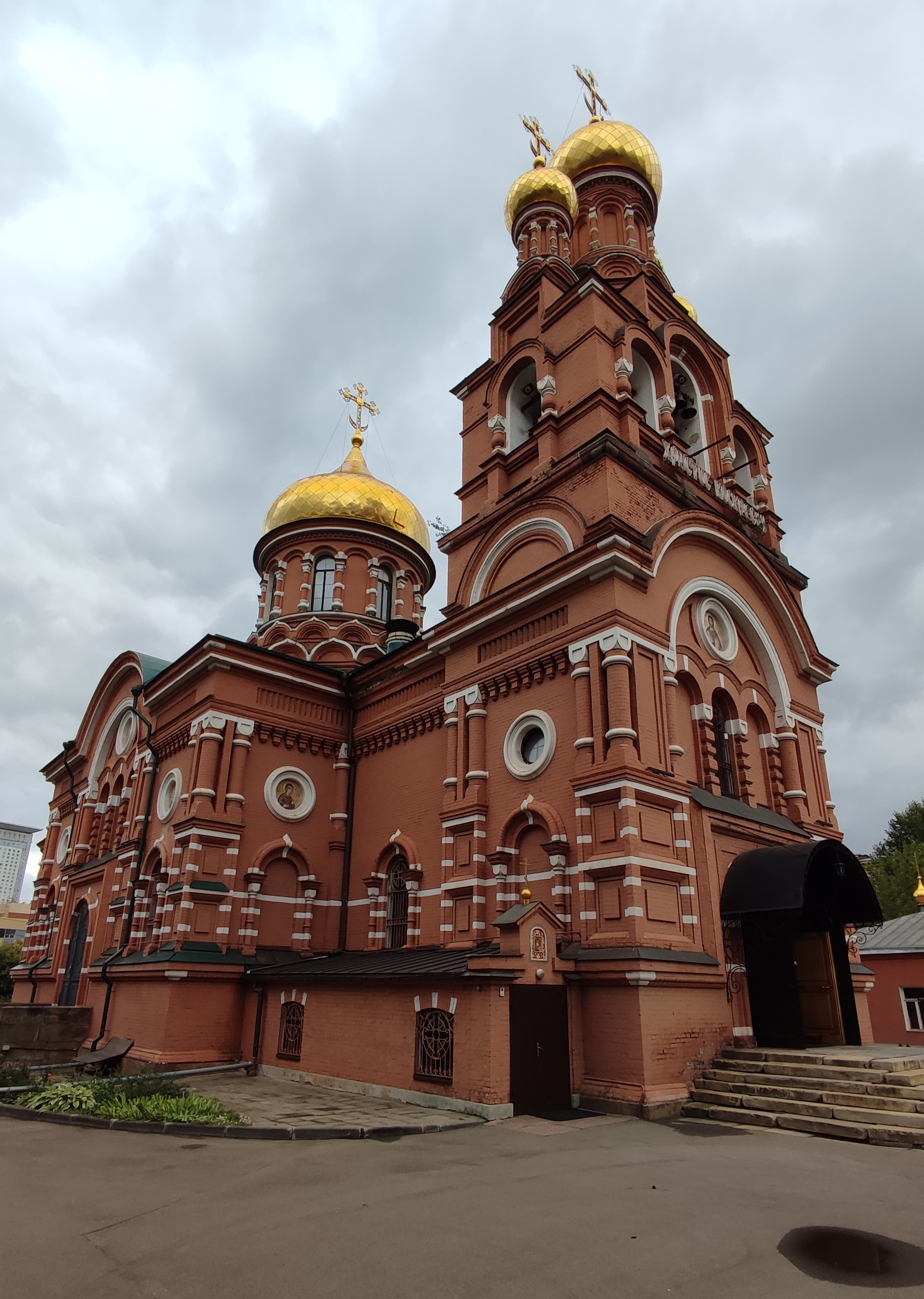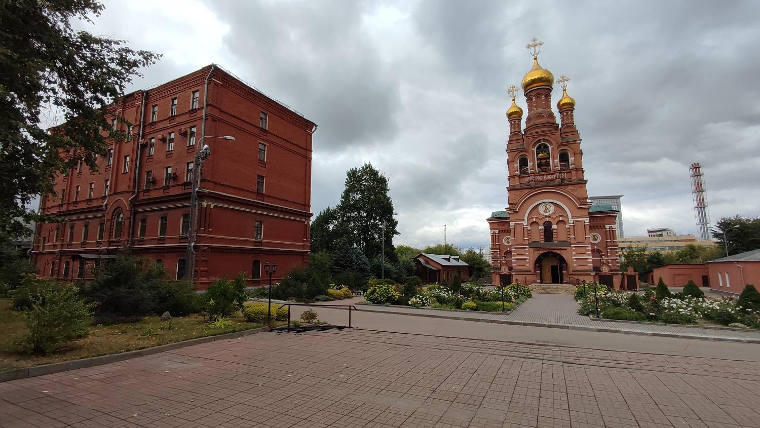 Чтобы соответствовать названию, в церкви Крестовоздвижения был создан придел во имя Алексия Человека Божия, а сама она была расширена. От первоначального облика сохранялся восьмерик с отделкой в стилистике нарышкинского барокко и шатровая колокольня. В 1853 году по проекту М.Д. Быковского построен новый монастырский собор с посвящением Алексию Человеку Божию: в нем сочетались псевдовизантийские и венецианские черты. В 1887–91 годах А.А. Никифоровым был построен отдельный кладбищенский храм Всех Святых. Церковь сочетала в себе русские и византийские черты, с запада была пристроена трехглавая колокольня. Наконец, небольшая церковь во имя Архангела Михаила была освящена в 1879 году при богадельне, покоях настоятельницы и «училище для южнославянских девиц».