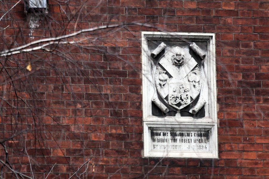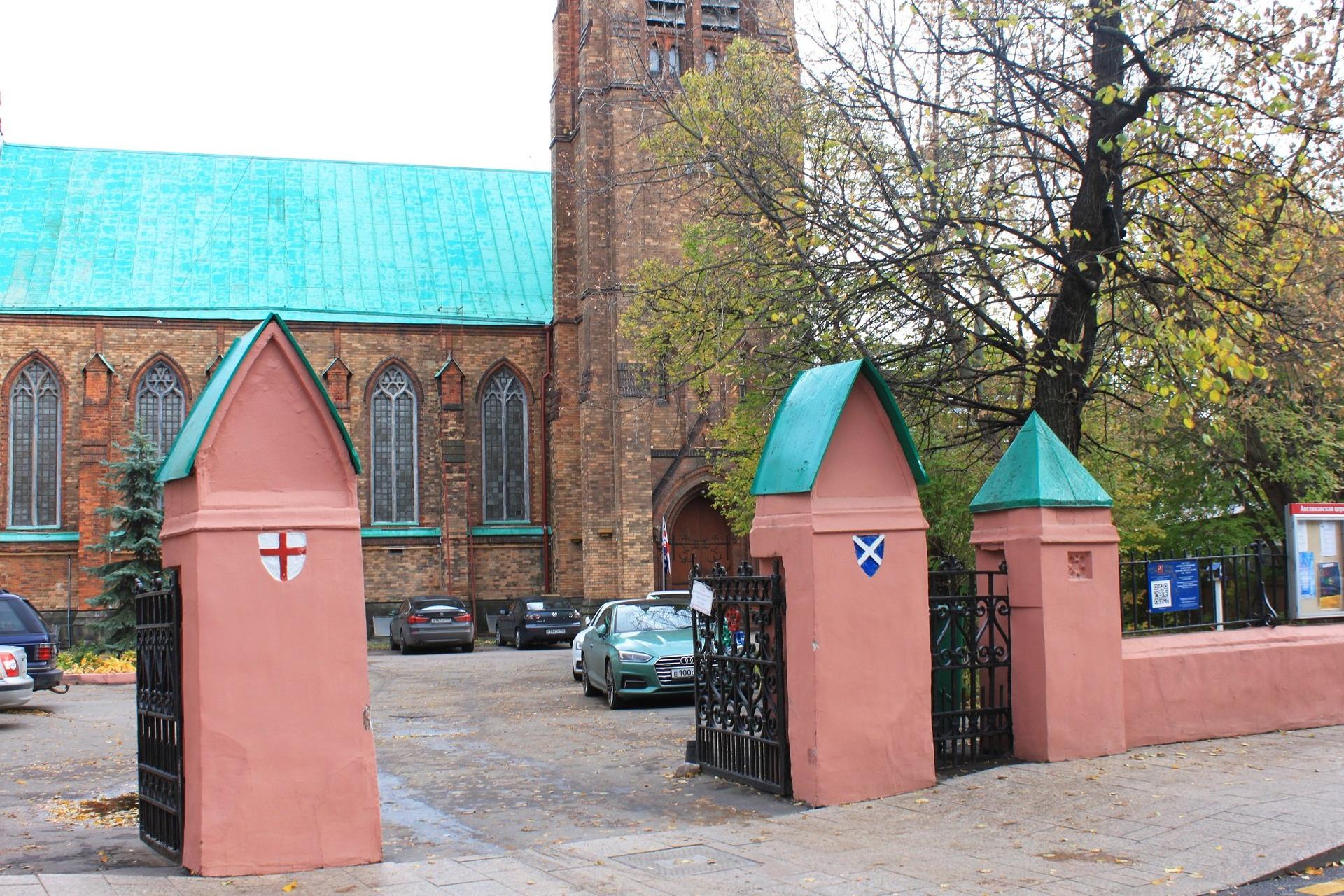 Чуть позже, в 1894 году, ансамбль владений англиканской общины дополнился каменной оградой с небольшими щитами, несущими английский и шотландский кресты, а также домом пастора. Последний появился на средства Джейн МакГилл – представительницы известной в Москве шотландской фамилии, в чьём владении были цементный, механический и чугуннолитейный заводы. Строительство дома пастора было памятником Джейн МакГилл её покойному мужу Роберту – соответствующая надпись на английском языке и сегодня украшает дом. Над памятной табличкой красуется стилизованный четверочастный герб с символами составных частей Соединённого Королевства (роза – Англия, чертополох – Шотландия, клевер – Ирландия), а также Георгием Победоносцем – гербом Москвы.