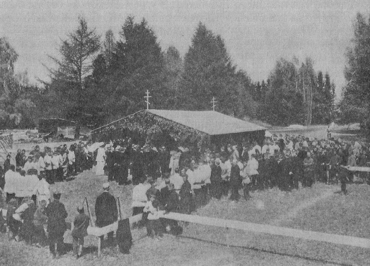 Г. А. Захарьин (1829-1898) – дворянин, врач-терапевт, профессор Московского университета, был известен и как благотворитель, сделавший крупные пожертвования на формирование коллекции Музея изящных искусств в Москве. Начиная с 1870-х гг. летние месяцы семья Захарьиных проводила в своем имении в селе Куркино; здесь Григорий Антонович и был погребен. А спустя несколько лет, в 1900 г., его вдова и дочь заказали архитектору Ф. О. Шехтелю проект семейной часовни-склепа, который тот выполнил в неовизантийском стиле с легким оттенком модерна. Автором эскиза мозаичного панно внутри часовни стал В. М. Васнецов, к тому времени прославившийся своими росписями во Владимирском соборе Киева.