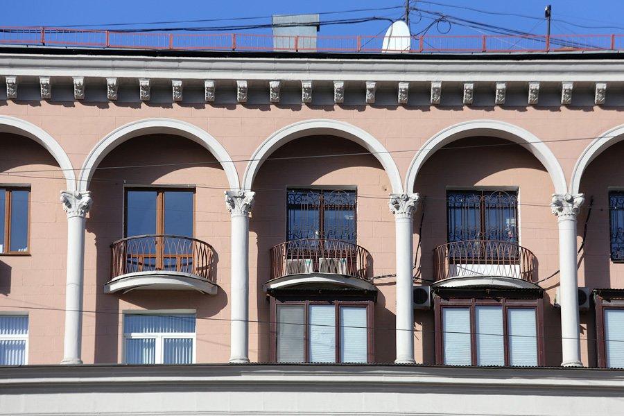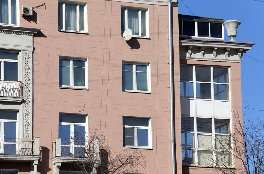 Центральная часть здания имеет девять этажей, последние два этажа объединены аркадой, напоминающей стиль домов итальянского Возрождения. Два крыла дома на один этаж ниже среднего объема. Как и в остальных здания комплекса, на первом этаже дома 26 расположены магазины. Торцы здания украшены интересными этажерками балконов. К сожалению, сейчас они застеклены и уже не представляют собой той легкой конструкции, которая была задумана при проектировании.