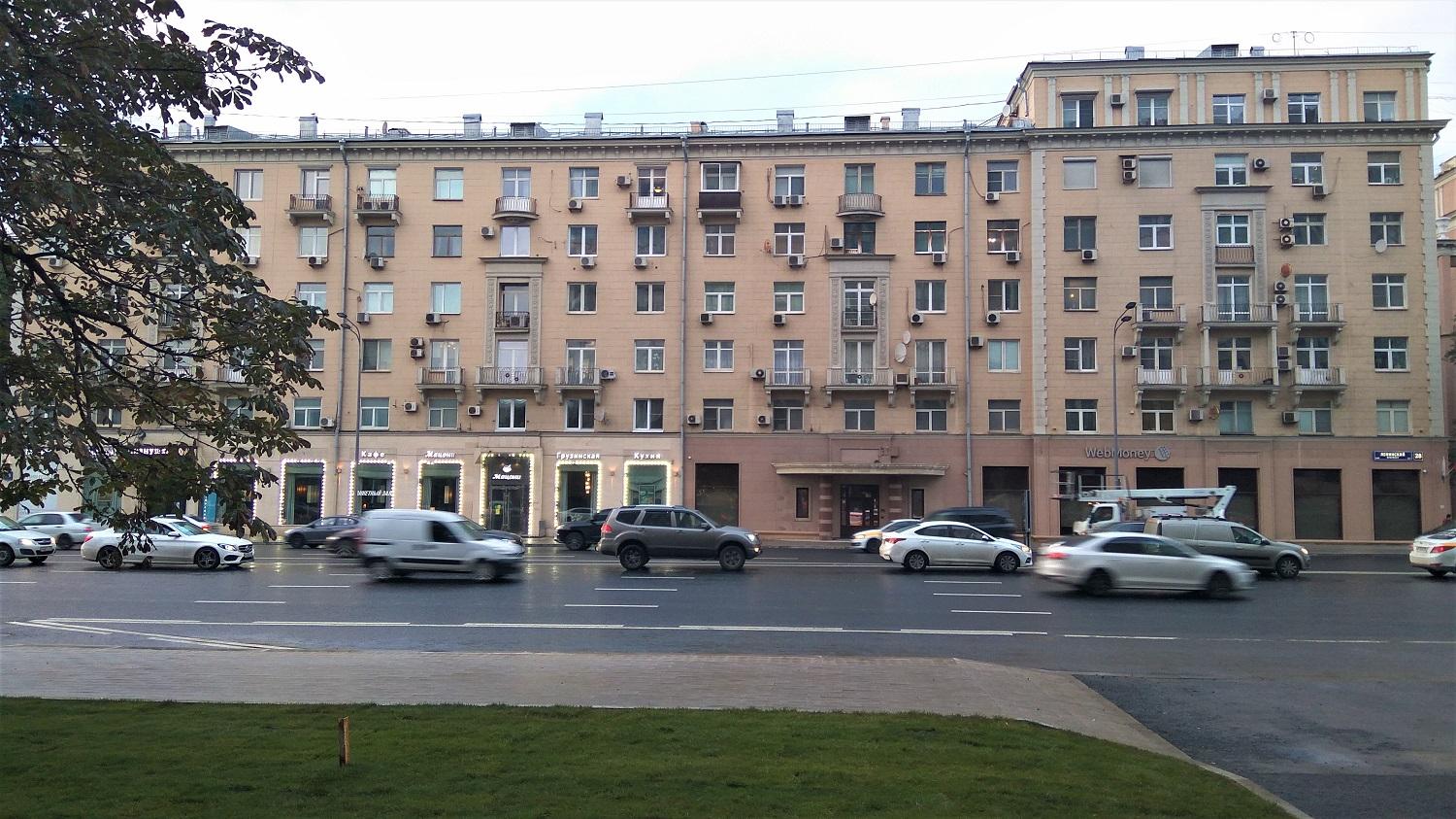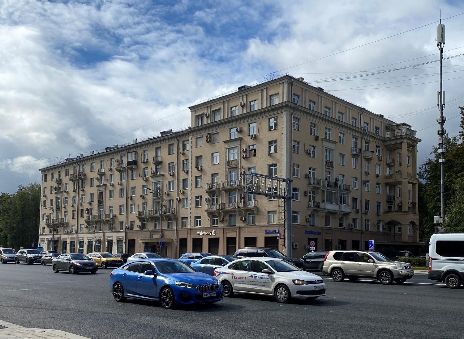 Одиннадцать домов по четной стороне Ленинского проспекта, построенных по проекту архитектора А.Г. Мордвинова при участии Д.Н. Чечулина и Г.П. Гольца, стали одним из таких архитектурных ансамблей.