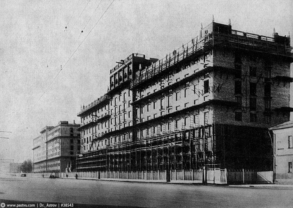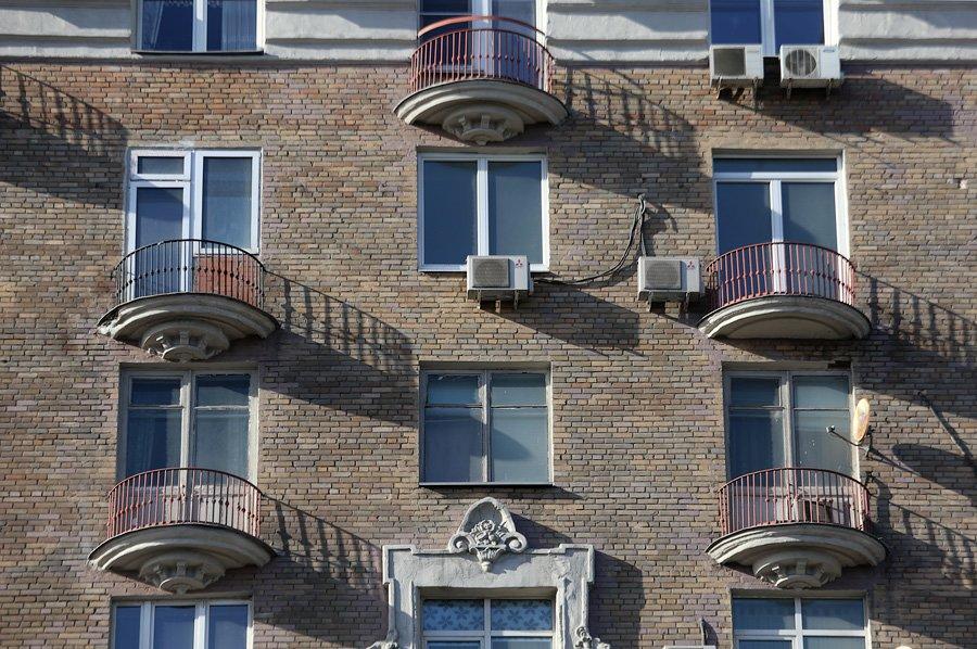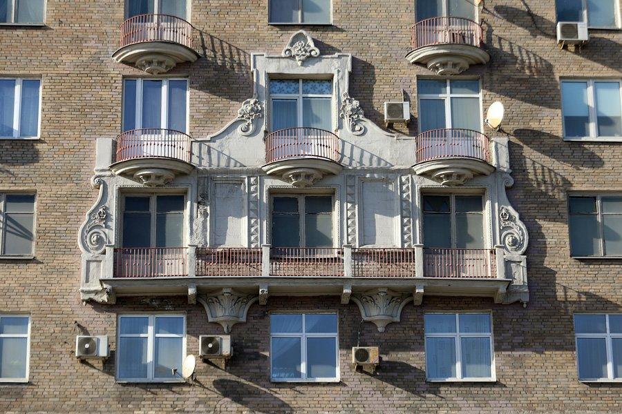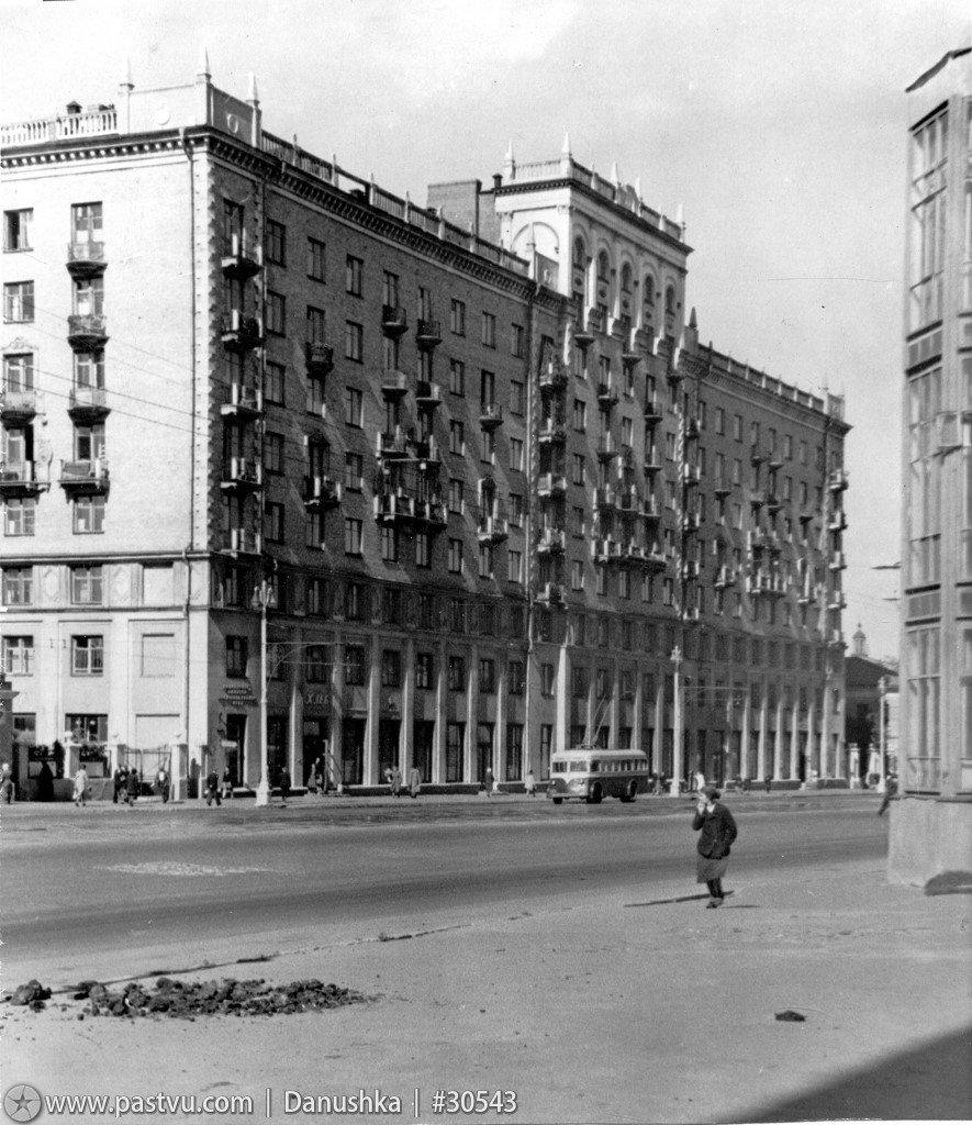 Со стороны Октябрьской площади ряд высотных домов по четной стороне открывает дом номер 12. Одиннадцать этажей, пять подъездов, 88 квартир – дом отвечал всем новым требованиям, которые предъявляло время к жилым постройкам столицы. Квартиры дома имели высокие потолки, большие окна. В центре здания возвышается квадратная башня – пентхаус.