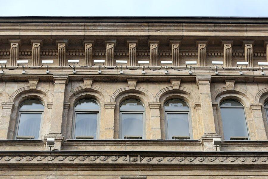 В конце улицы Никольской в Китай-городе стоит одно из самых красивых зданий – дом двадцать один. Это здание самой знаменитой аптеки Москвы – аптеки Феррейна. У него невероятно загадочная архитектура. На Никольской вас встречает фасад в стиле неоренессанс: большие окна второго этажа обрамляют высокие каннелированные колонны, увенчанные четырьмя статуями богини здоровья Гигий, которые кормят из чаши змей. А на весь остальной город он смотрит средневековым замком с башней с часами. Вернее, теперь с пустым проемом: часы, установленные Владимиром Карловичем Феррейном для удобства москвичей, давно оттуда исчезли и так и не были ничем заменены. Дом построил в 1893 году архитектор А.Э. Эрихсон.