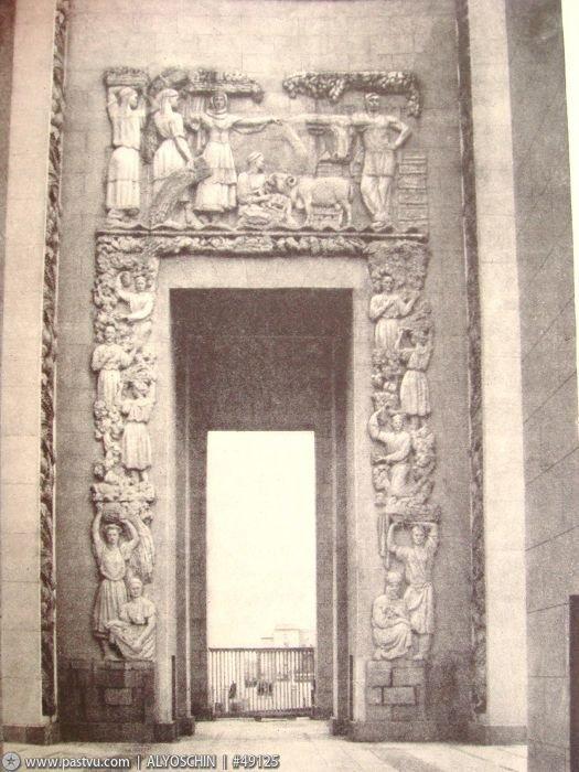 Арка Северного входа, обращенная в сторону улицы Сергея Эйзенштейна, когда-то служила главным входом на Всесоюзную сельскохозяйственную выставку (ВСХВ). Она была выстроена к первому открытию Выставки, состоявшемуся 1 августа 1939 года. Автор сооружения архитектор Л.М. Поляков, скульптор Г.И. Мотовилов. Это вторая постройка на этом месте, так как в 1937 году по проекту главного архитектора ВСХВ В.К. Олтаржевского здесь уже был выстроен главный вход. Но он, как и целый ряд уже готовых или строящихся павильонов, был сочтен слишком простым и не отвечающим духу Всесоюзной выставки. Эти сооружения были снесены.
