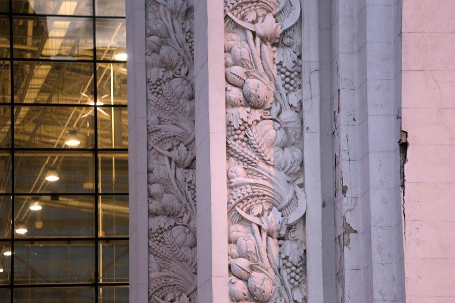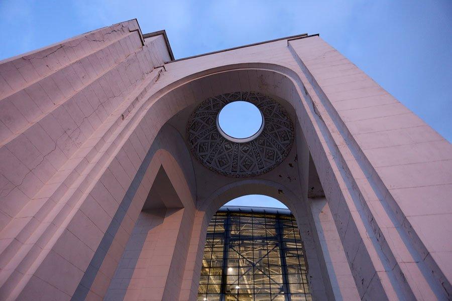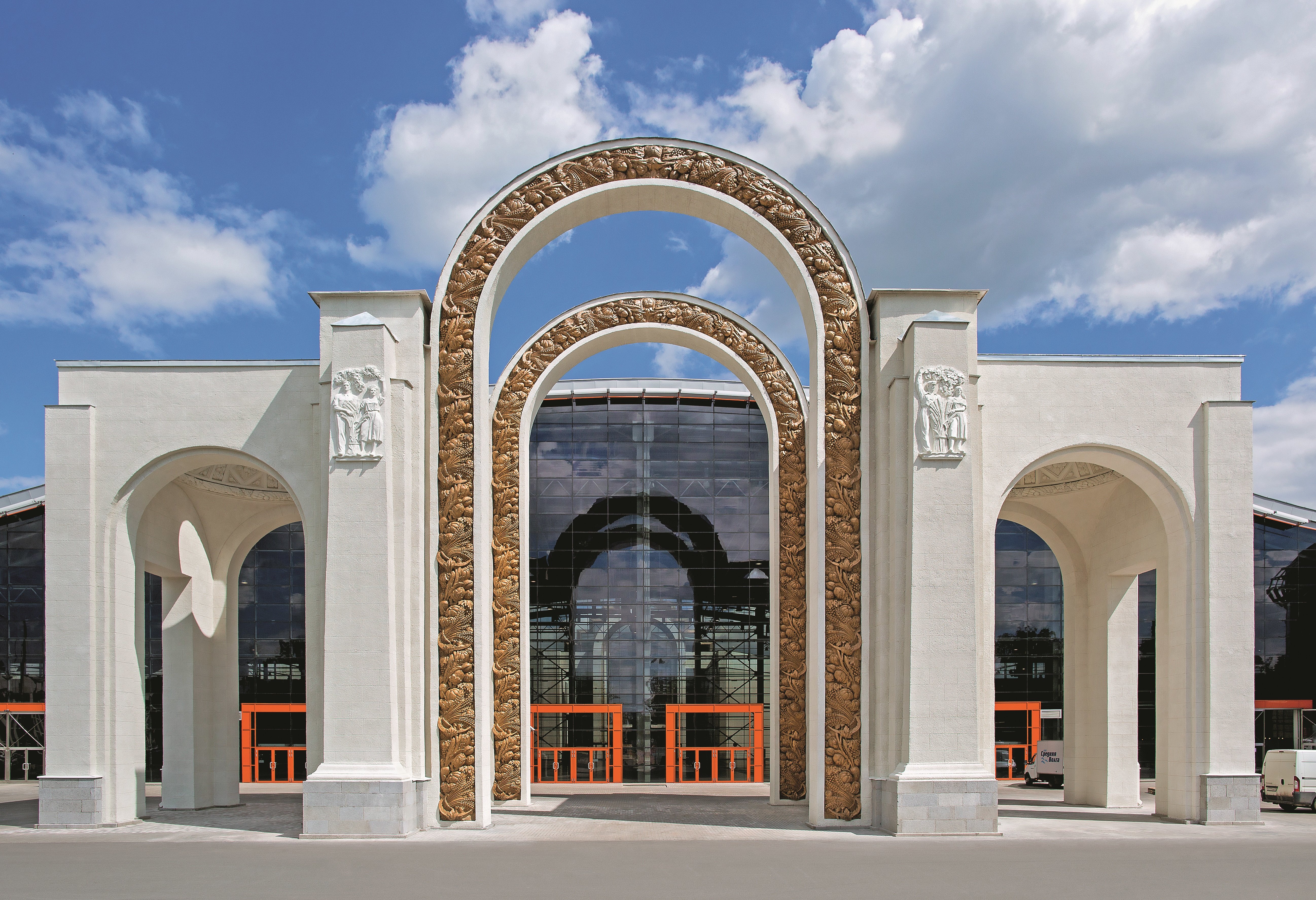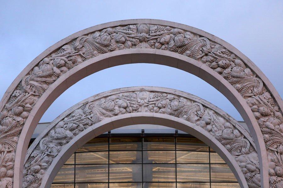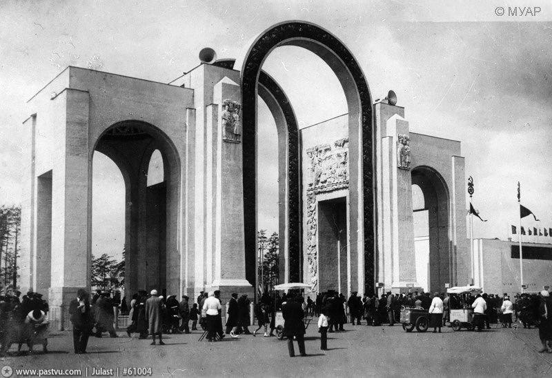 Легкая трехпролетная арка отражает масштаб ВСХВ 1939 года, ее архитектура будто сохраняет «воспоминание» о геометричности простых форм конструктивизма, являясь одновременно монументальным и простым для восприятия сооружением. До нашего времени не сохранились барельефы, украшавшие пилоны с внешней стороны, а также внутренние стенки арки. Также не сохранились фланкировавшие арку здания касс, разобранные в 1970-е годы. Но сама она – единственное на сегодня сооружение 1939 года, дошедшее до нас без поздних переделок.