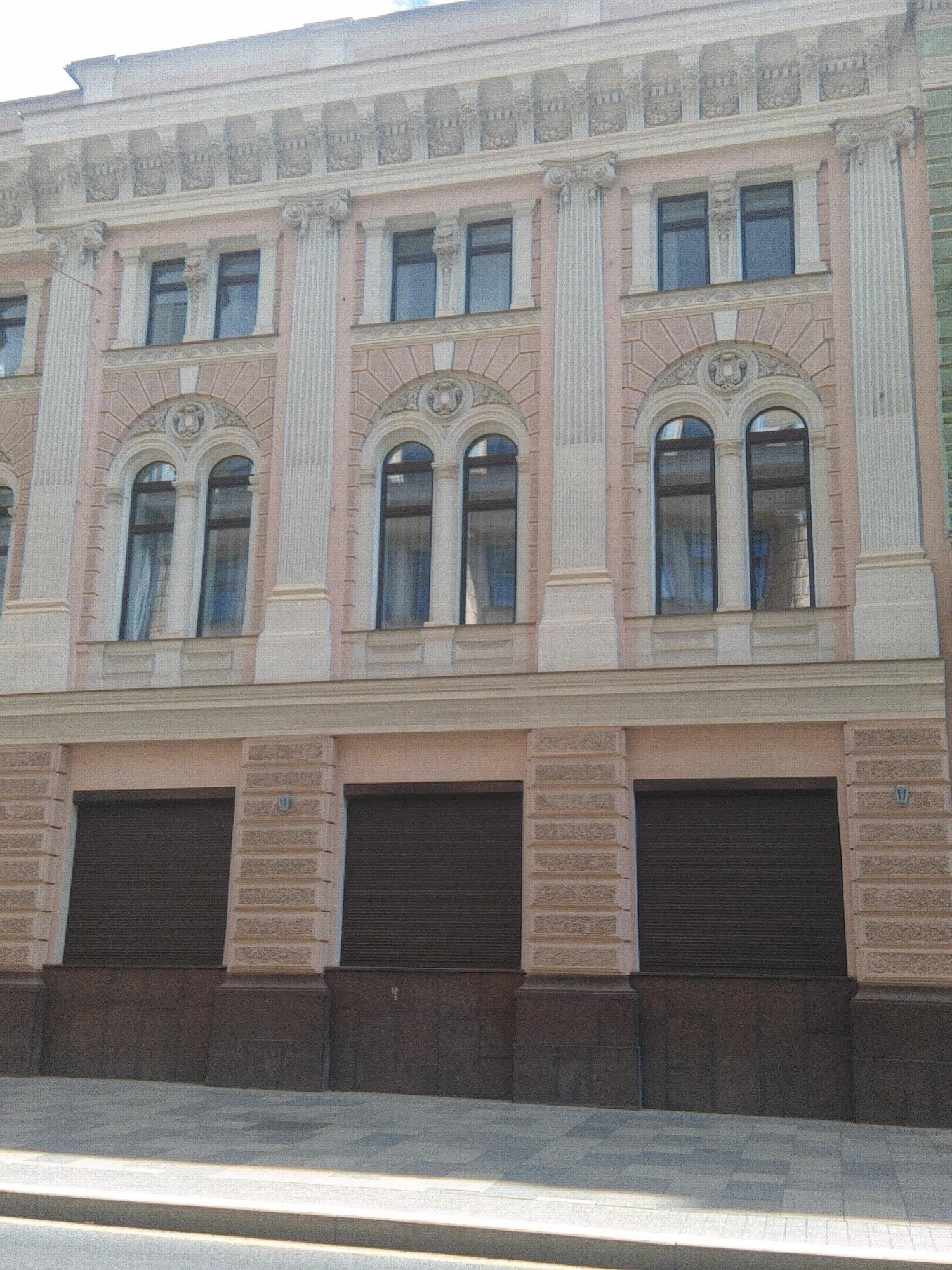 В таком виде здание простояло до 1882 г., когда левый участок приобрел Московский торговый банк Н.А. Найденова.