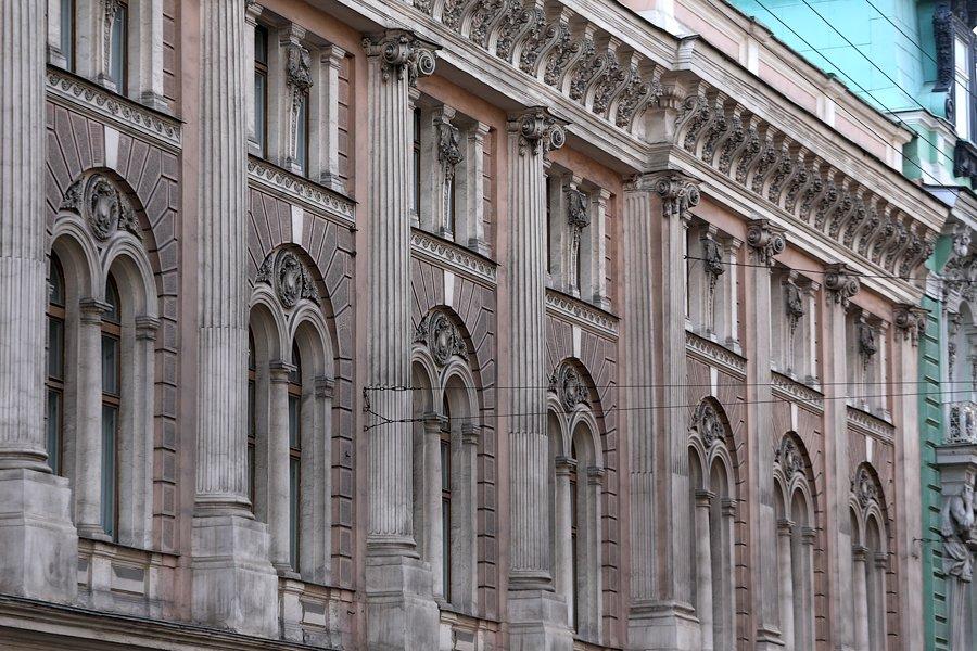 Проект перестройки был поручен архитектору Б.В. Фрейденбергу. Архитектор перестраивает здание Казакова, сохраняя плавный полукруглый угол, уводящий здание в Юшков переулок. Здание построено в стиле эклектика, но четкое чередование окон и пилястр, карниз напоминают дома эпохи классицизма. Первоначально крышу здания украшали гипсовые вазоны.