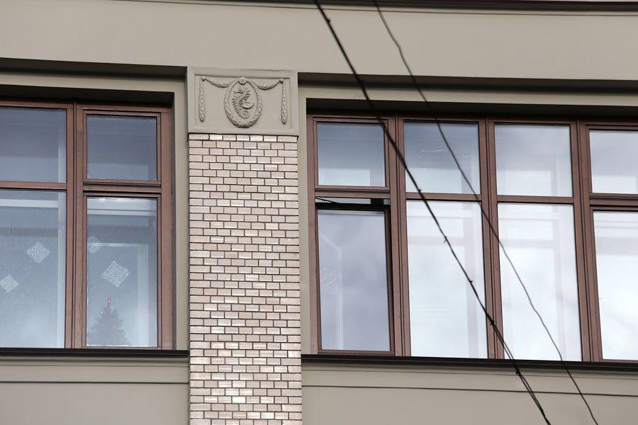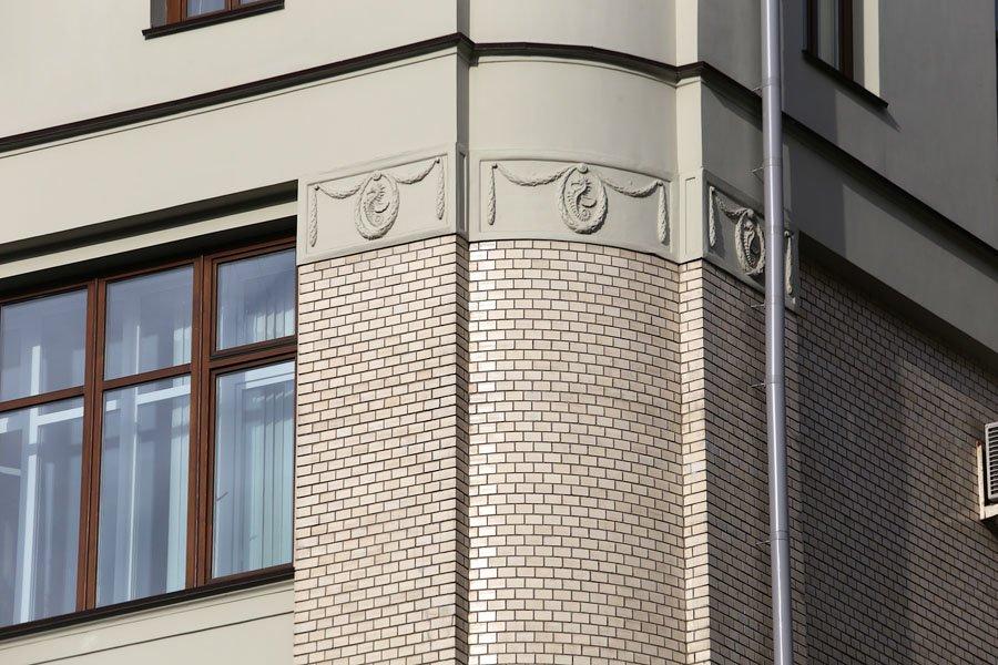 Постройка была поручена Ф. О. Шехтелю, и он создал один из своих шедевров - здание почти лишено каких-либо украшений, только скромная гирлянда над верхним этажом и плоские венки под ним несколько оживляют строгий фасад. Почти вся его плоскость занята огромными окнами, которые оставляют немного места для междуэтажных перекрытий и горизонталей, облицованных глазурованным кирпичом.