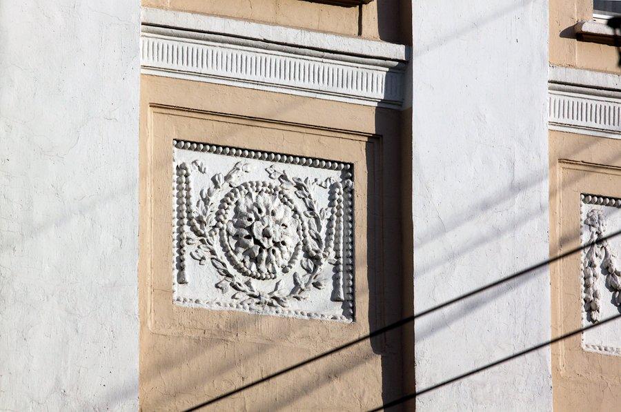 Дом сохранил до наших дней архитектурный облик, характерный для раннего классицизма – его главный фасад оформлен пилястрами с коринфскими капителями, нишами, заполненными тонким лепным декором, розетками во фризе и рустом в уровне первого этажа. Между главным домом и флигелями сохраняется каменная ограда с пилонами ворот по обе стороны дома.