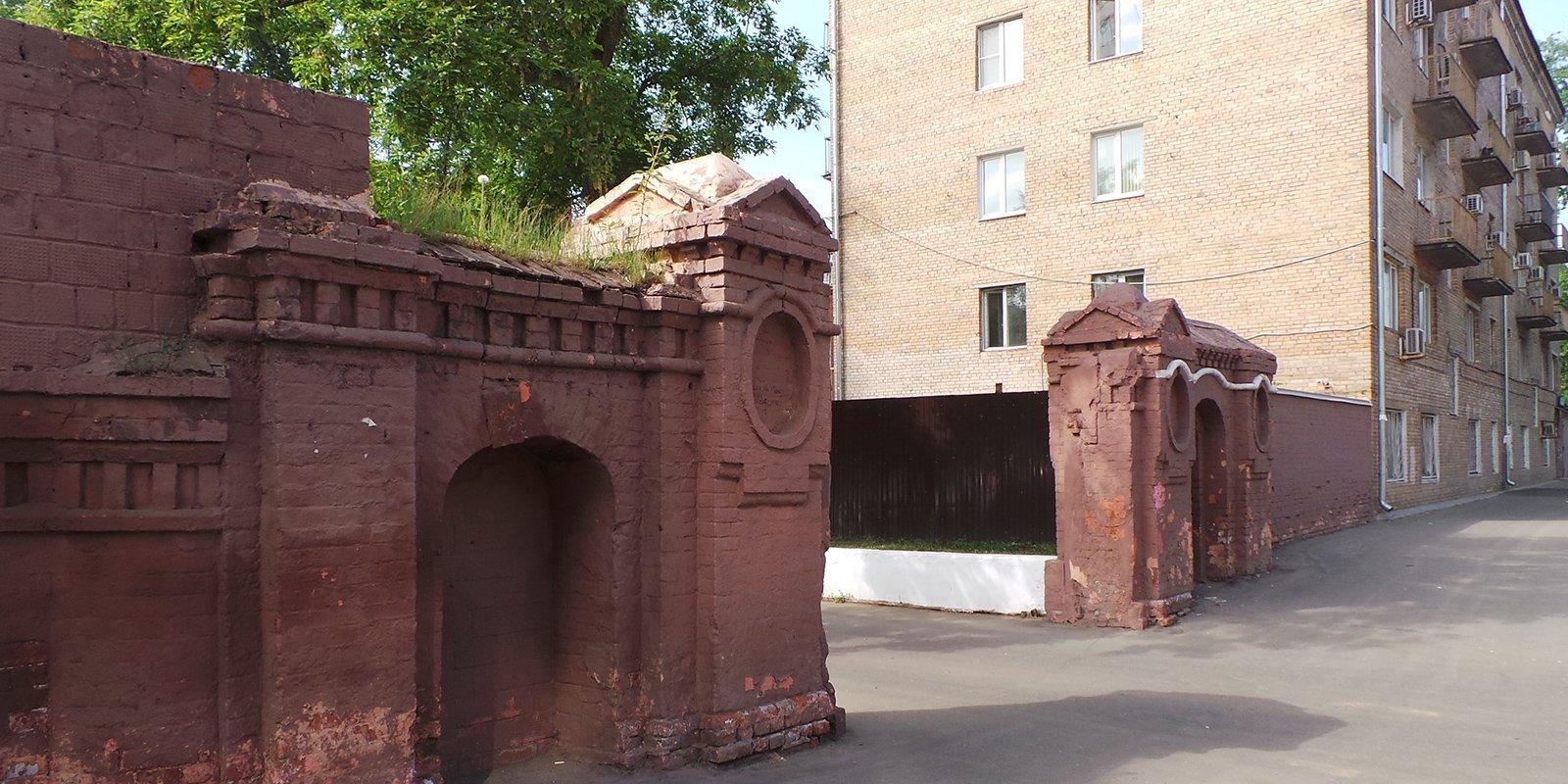 Сохранились пилоны ворот, которые украшены глубокими арочными и овальными нишами.