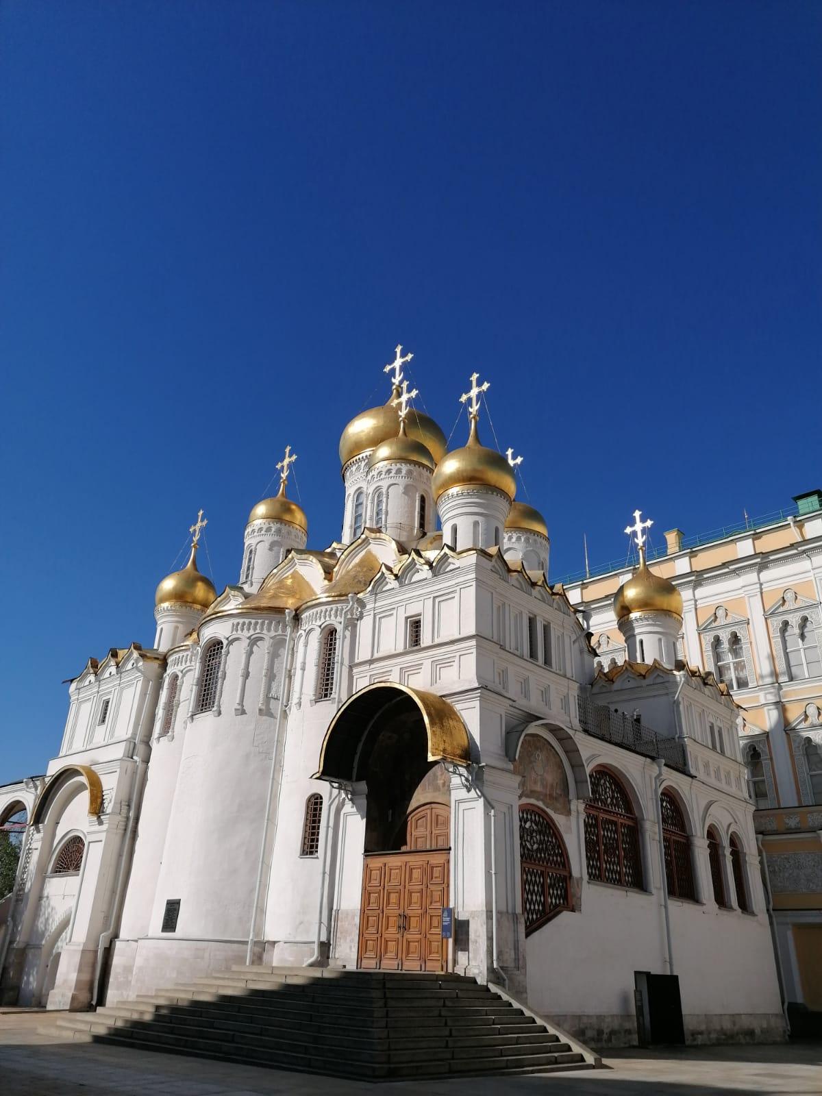Построенный при великом князе, государе «всея Руси» Иване III в 1484-1489 годах, Благовещенский собор имеет особое значение в истории русского зодчества, поскольку большинство построек новой великокняжеской резиденции Ивана III возвели итальянские архитекторы, собор стал выдающимся памятником отечественной архитектурной традиции. По свидетельству летописи, его создавали псковские мастера.