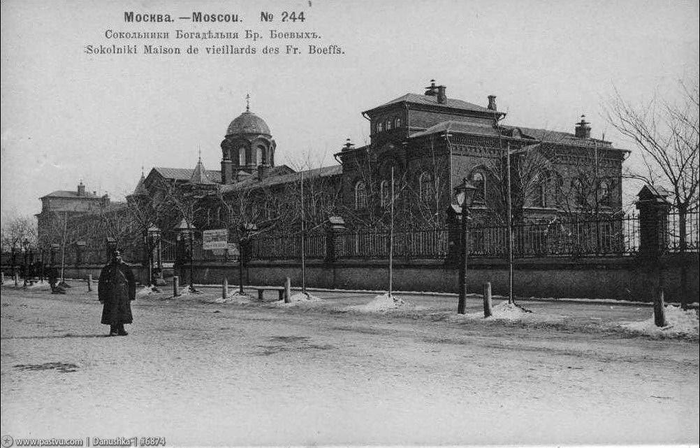 На протяжении второй половины XIX – начала ХХ веков в районе Сокольников появлялись одно за другим новые общественные учреждения - больницы, богадельни, приюты, большинство из которых строилось на частные пожертвования. Среди благотворителей были семьи фон Дервиз, Бахрушиных, Ермаковых, Боевых. На средства последних в Сокольниках возведена богадельня (дом призрения) на улице Стромынке.