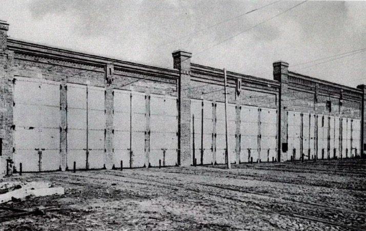 Строительство Большого вагонного сарая началось в первой половине 1900-х годов, закончено было в 1909-м. Первоначально на фасаде были устроены 22 воротных проема, закрывавшихся огромными деревянными полотнами. В советское время, когда трамвайный парк превращали в троллейбусный, увеличили высоту ворот, а проемы для проезда попарно объединили друг с другом. Теперь, после реставрации 2017–2019 гг., фасаду здания возвращен исторический облик.
