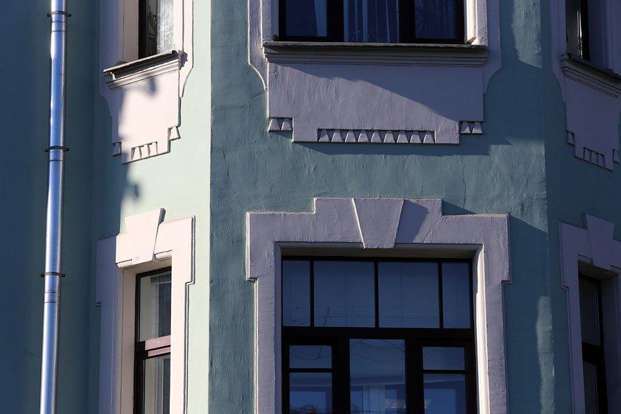 По своей архитектуре это типичное жилье нарождавшегося в Российской империи среднего класса — людей, способных платить за просторную квартиру с черной лестницей, водопроводом, помещениями для прислуги, но не имеющих средств и амбиций построить или арендовать отдельный особняк. Дом имеет несколько граненых эркеров, углы и поверхность стен нижних этажей отделаны рустовкой. На фоне изначально крашенной в плотный тон штукатурки выделялись светлые детали обрамления окон. Стилистически модерн уступает место неоклассике и здание в целом отличает достаточно строгое убранство.
