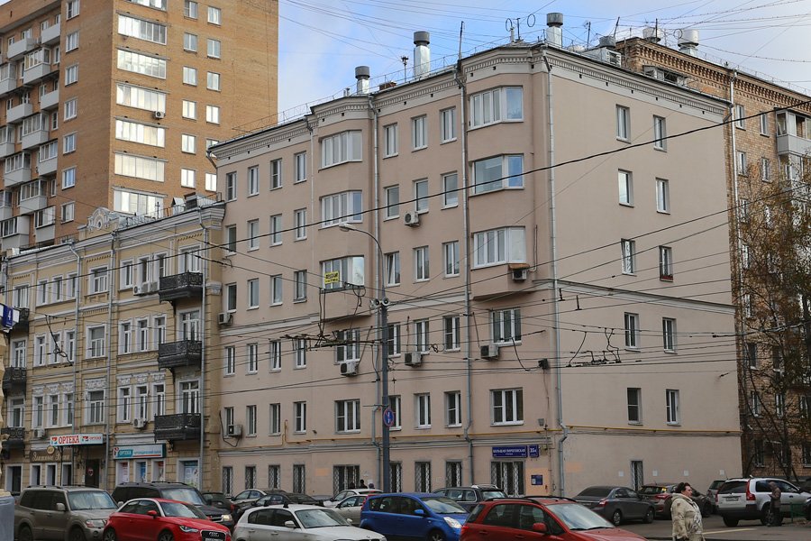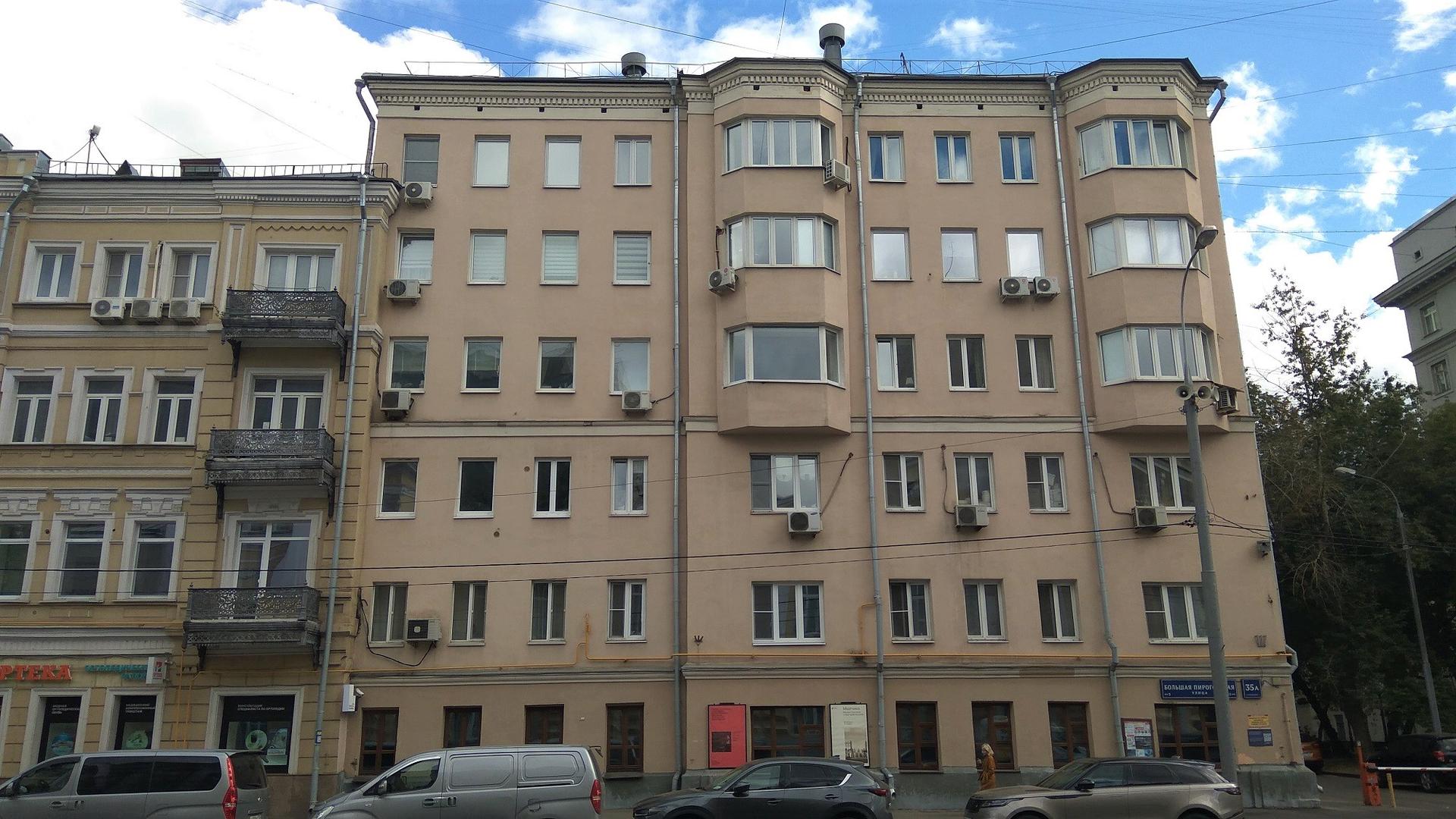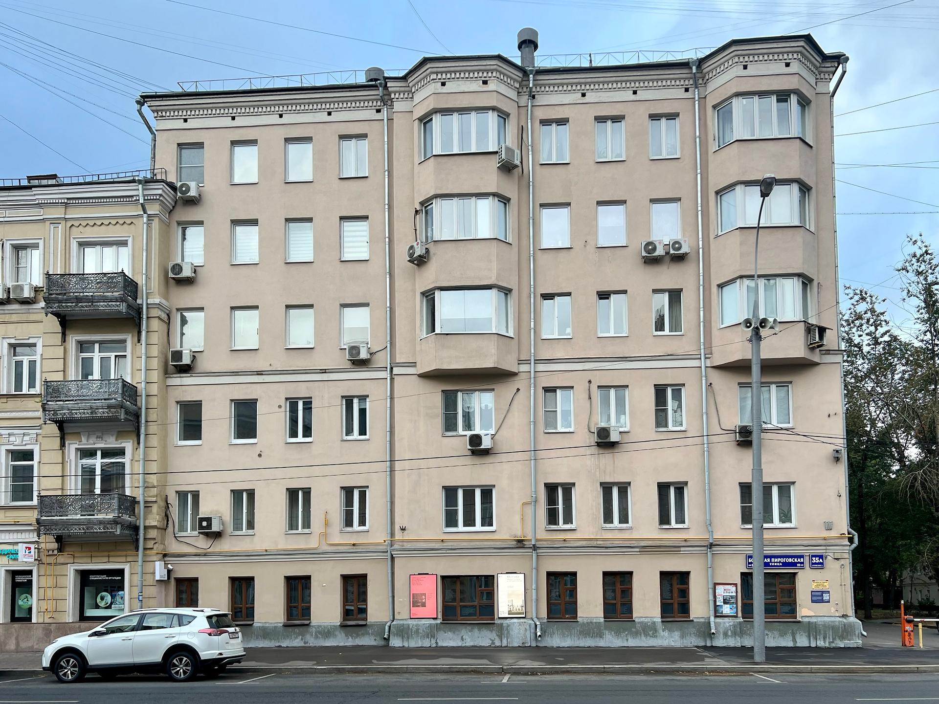 На Большой Пироговской улице под номером 35 значатся два дома. Объединенные общей стеной, две разностилевые постройки отмечены как «дом № 35» и «дом № 35а».