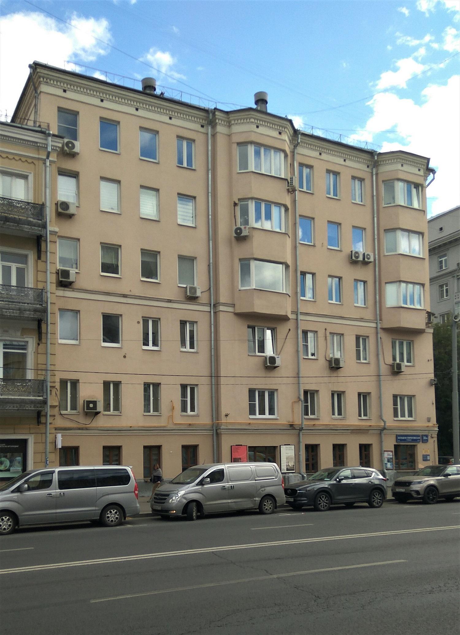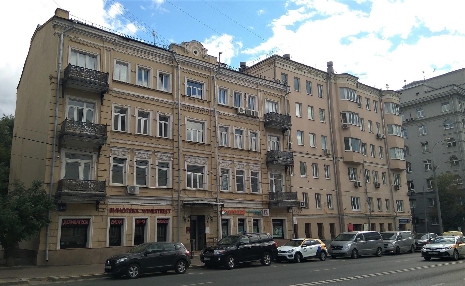 Бывший особняк купцов Решетниковых, значащийся под № 35а, до 1960-х гг. представлял собой постройку с изломанным профилем: часть здания была двухэтажной, с антресолями и лепниной, часть - трехэтажной, соединенной со зданием в четыре этажа (ныне дом № 35). В 1961 году двухэтажный и трехэтажные корпуса были достроены до шестиэтажного дома. В 1920-х гг. архитектор Адольф Францевич Стуй занимался частичной перестройкой особняка, поселился во втором этаже и получил право сдавать комнаты внаем. Решетниковым советская власть от квартиры оставила только гостиную с колоннами на третьем этаже. По легенде, в доме находилась молельня Григория Распутина.