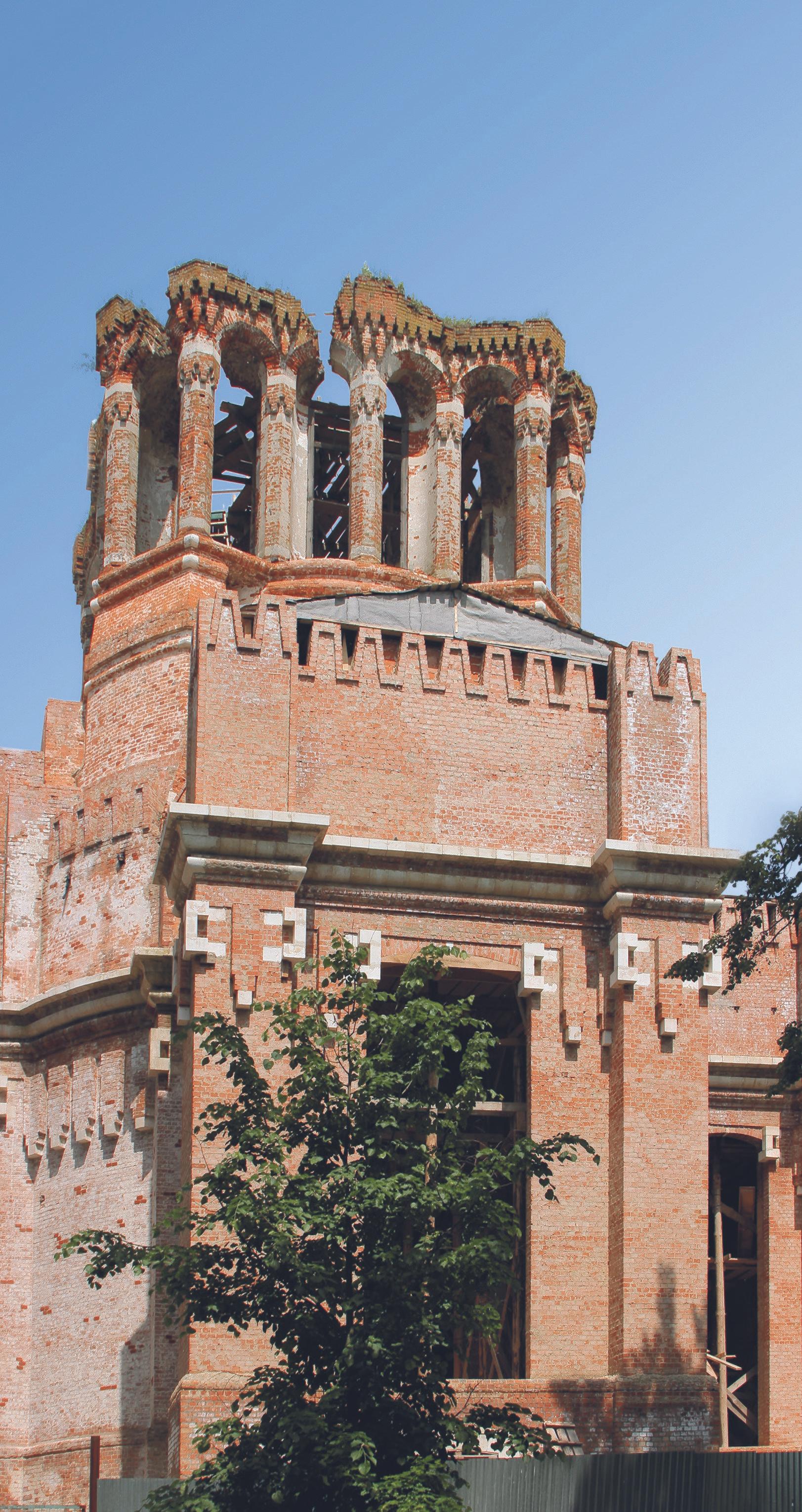 Особое внимание уделили колокольне, все семь ярусов которой были полностью отреставрированы. Специалисты выполнили сложные работы по докомпановке и инъектированию кирпичной кладки, а также восстановили штукатурку фасадов и интерьеров. Воссоздание утраченных элементов лепного декора и орнаментальных деталей позволили придать зданию его первоначальный облик.