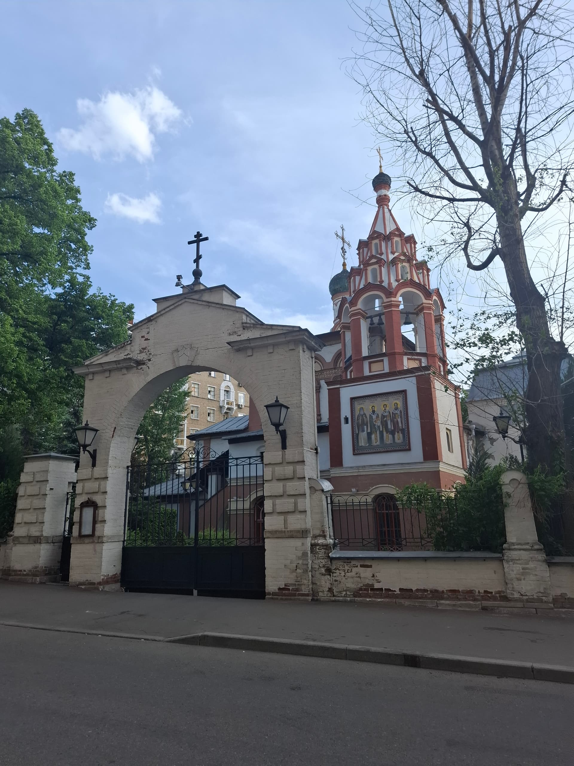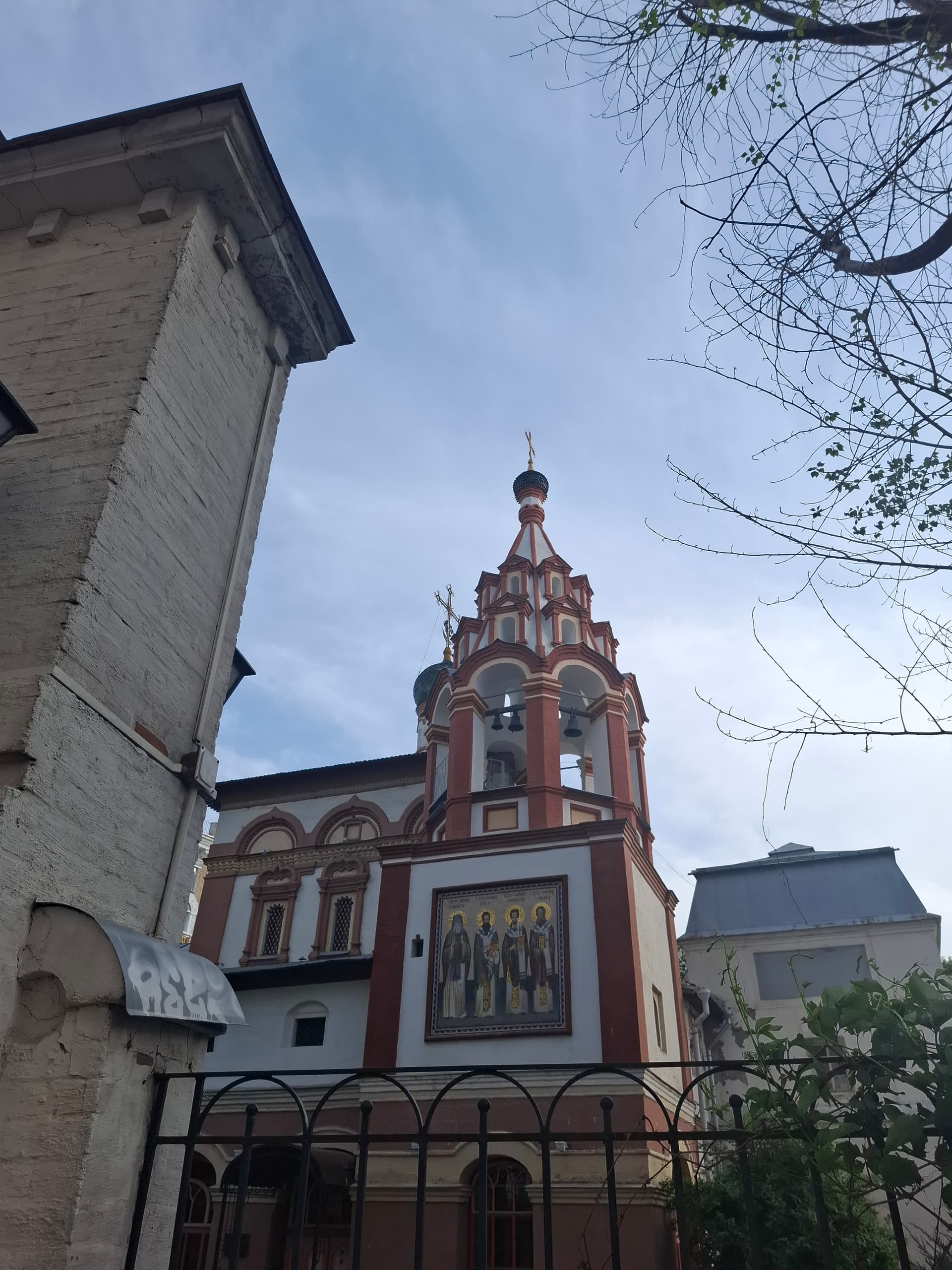 Здание церкви 1670-1674 годов, начала XІХ века, участвует в формировании застройки Малого Трехсвятительского переулка. Объемно-пространственная композиция здания церкви состоит из разновеликих объемов, включая шатровое завершение колокольни, барабаны и главы, венчающие карнизы и коньки.