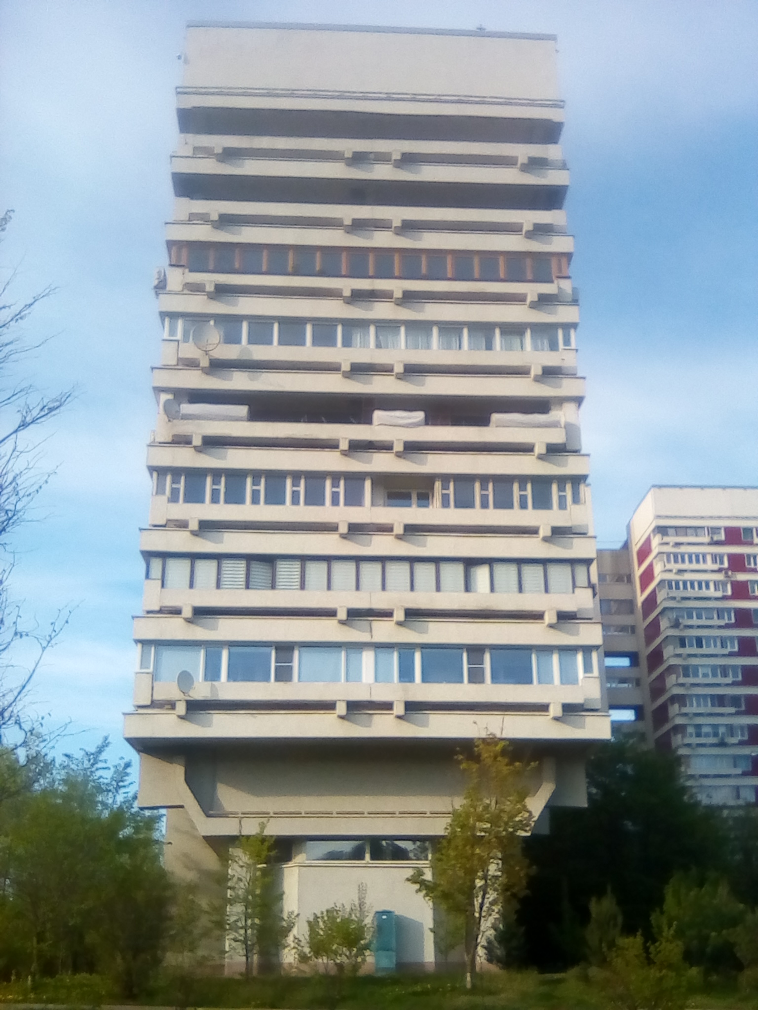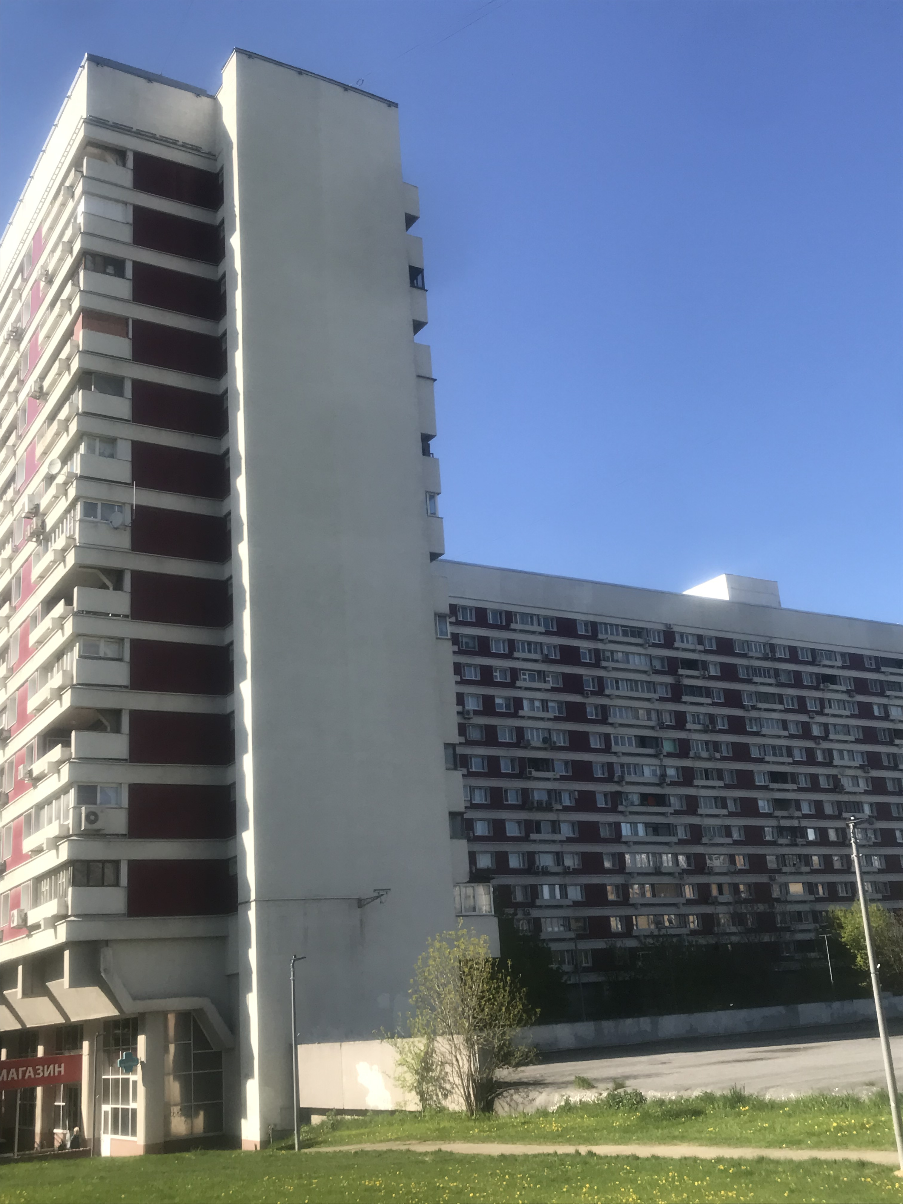 Планировалось, что весь район будет застроен домами, подобными этому, и в перспективе могло бы получиться нечто похожее на Северное Чертаново. Однако после Олимпиады грандиозные планы поменялись. Нужно было быстро строить качественное жилье, а не экспериментировать. Поэтому Чазовский дом остался единственным в своем роде среди типовых домов серий Б3 и П44.