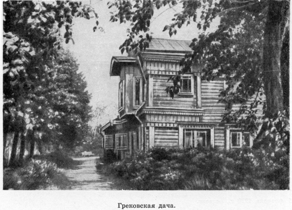 Одной из первых построек, возведенных здесь по проекту В. А. Симова еще в 1890-х гг., стала дача И. Н. Грекова, получившая название «Грековка». Греков был одним из учредителей и членом правления Московского общества искусства и литературы, «имеющего целью способствовать распространению познаний среди своих членов в области искусства и литературы, содействовать развитию изящных вкусов, а также давать возможность проявлению и способствовать развитию сценических, музыкальных, литературных и художественных талантов». Инициатором создания этого «артистического клуба без карт» был К. С. Станиславский.