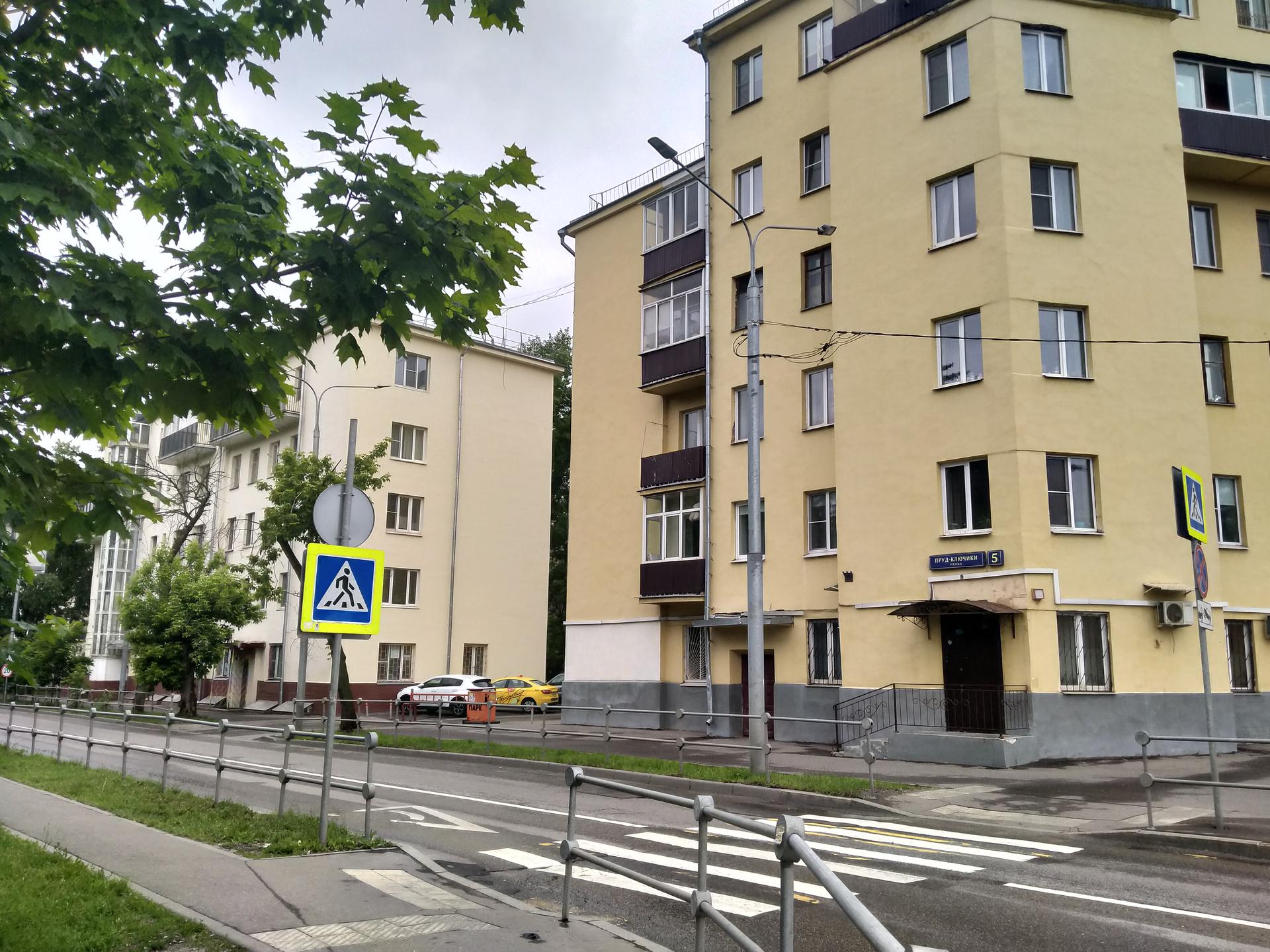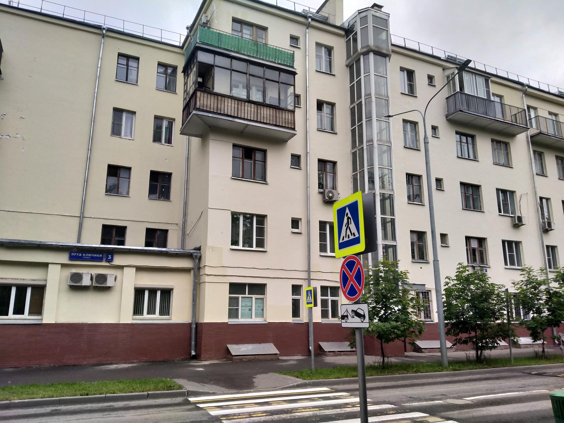 Выделяются только их повышенные углы с опоясывающими их балконами. Наиболее интересен монументальный дом № 5 по ул. Пруд-Ключики, отгораживающий треугольный двор. Вместо типичной одной угловой секции, срезанной под 45 градусов, в этом здании сделано два таких повышенных элемента. Один из этих домов (№ 3 по ул. Пруд-Ключики) тоже был заселен американскими специалистами, жившими в СССР, впрочем, недолго. Он имел высокую проездную арку и балконы с глухими парапетами на углах. После войны здесь «жил» главный герой фильма Марлена Хуциева «Мне двадцать лет» («Застава Ильича»).