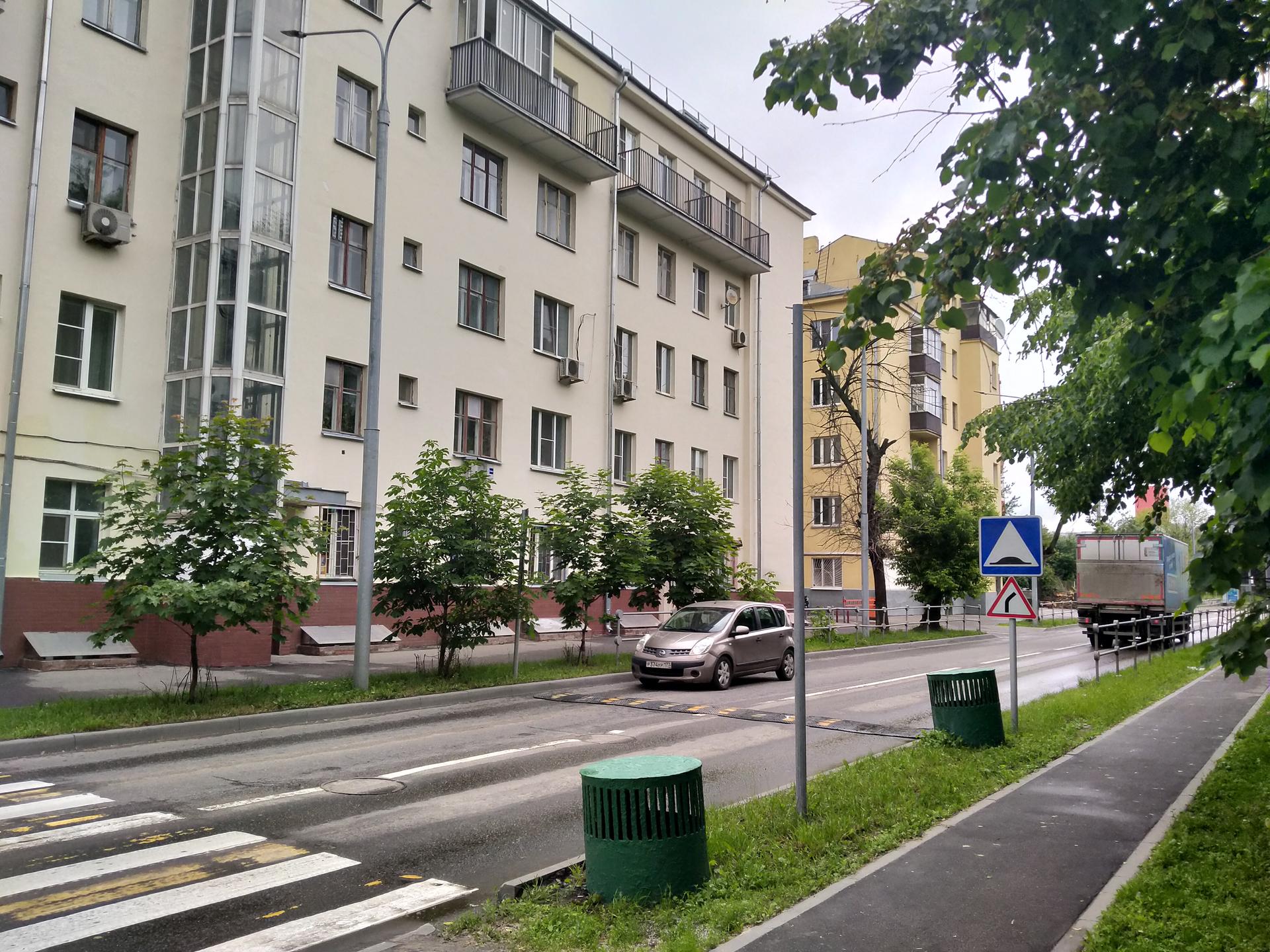 По другую сторону от Авиамоторной улицы есть еще два квартала того же времени, а за ними разбит парк. Дома занимают асимметричный участок, выходящий к железной дороге, и лишены какого-либо декора.