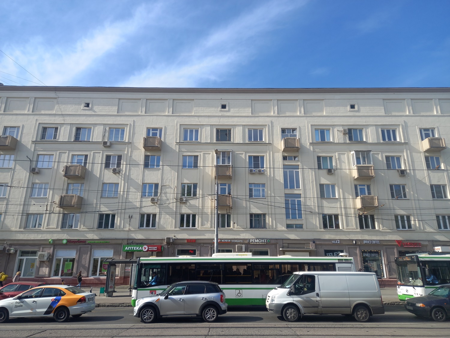 Эти длинные тринадцатиподъездные дома образуют квадратный двор с клумбой в центре. На ней статуя Ленина, одетого по советской моде тех лет (френч, кепка с квадратным козырьком, тупоносые ботинки). Первый квартал «Дангауэровки» был застроен шестью домами, вытянутыми с севера на юг (их сохранилось пять), а также нескольким односекционными корпусами, изолирующими дворы от шоссе, и еще двумя Г-образными домами, фланкирующими южный выезд из квартала своими башенными угловыми секциями.